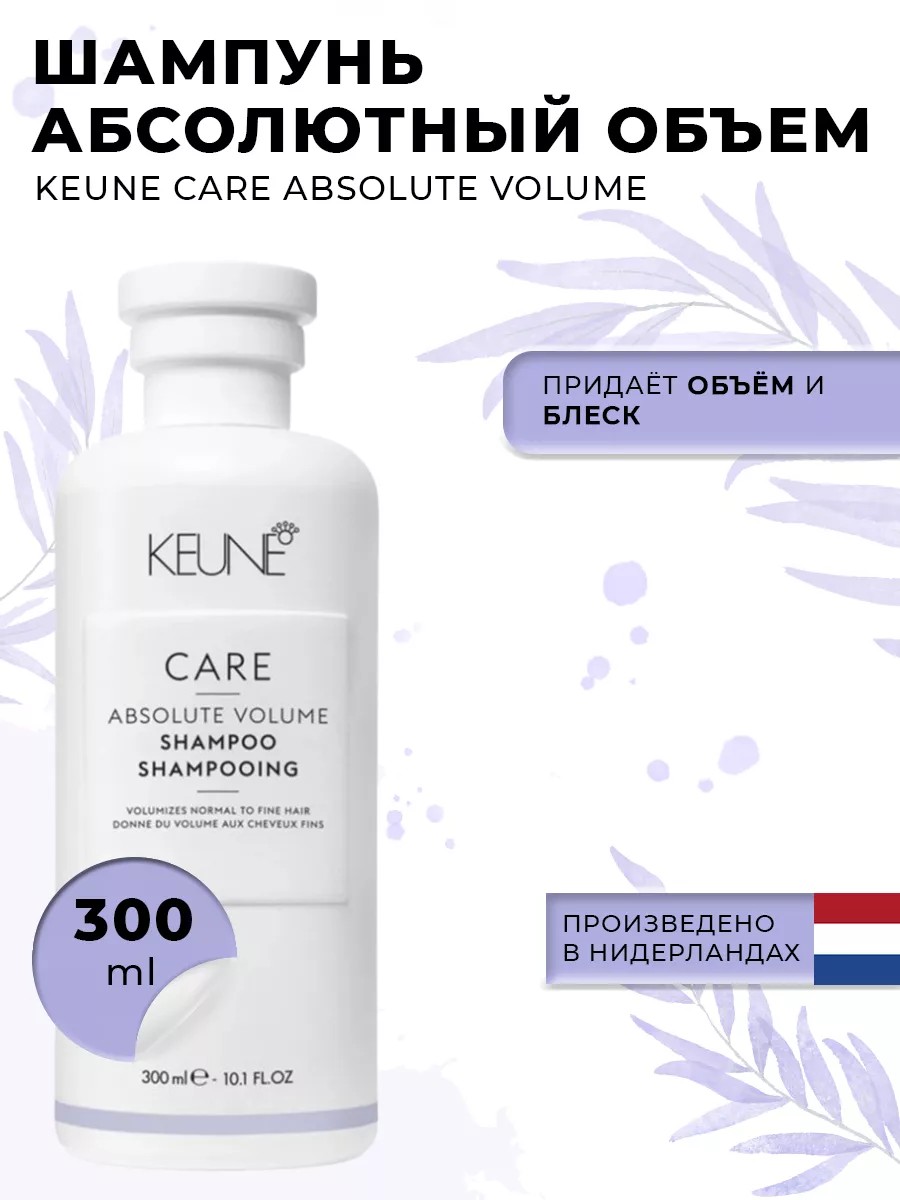 Встречайте идеальное решение для создания привлекательного объема для волос нормального или тонкого типа - профессиональный шампунь Keune Care Absolute Volume! Его уникальный состав, сочетающий протеины пшеницы и жидкий кератин, поможет вам достичь впечатляющего объема и здорового блеска без утяжеления!