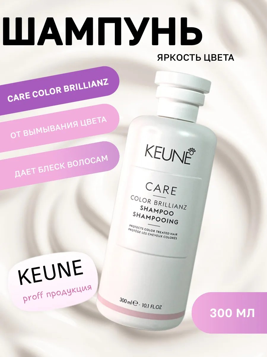Нанесите шампунь на влажные волосы, массируйте до образования пены, затем тщательно смойте. Для лучшего результата используйте вместе с кондиционером Keune Care Color Brillianz.