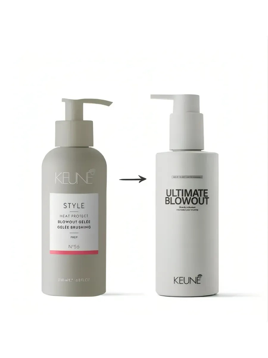 Испытайте непревзойденный эффект укладки! Термозащитный лосьон Keune Ultimate Blowout обеспечивает гибкую среднюю фиксацию и придает объем и сияющий блеск.