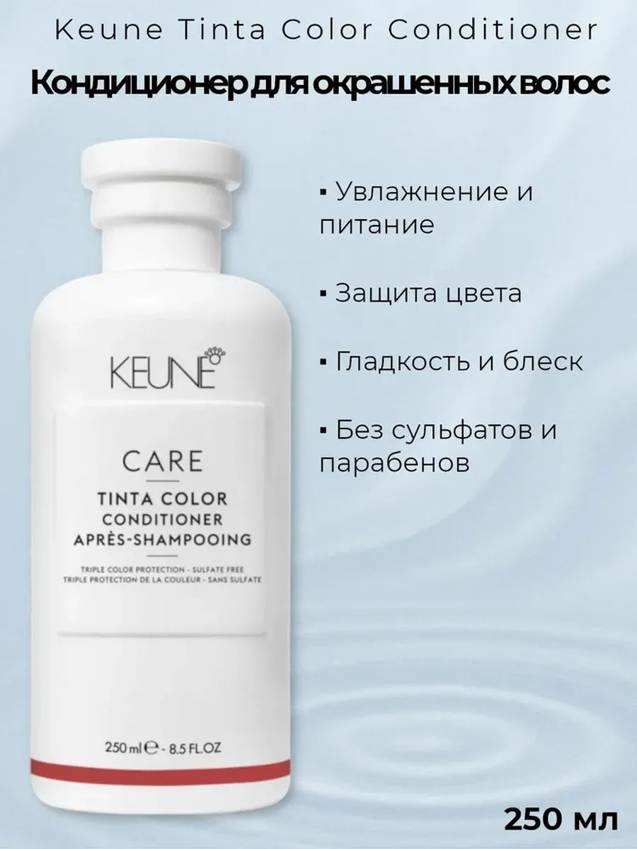 поклонникам красок Keune Tinta Color — кондиционер усиливает эффект от окрашивания и продлевает его результат.