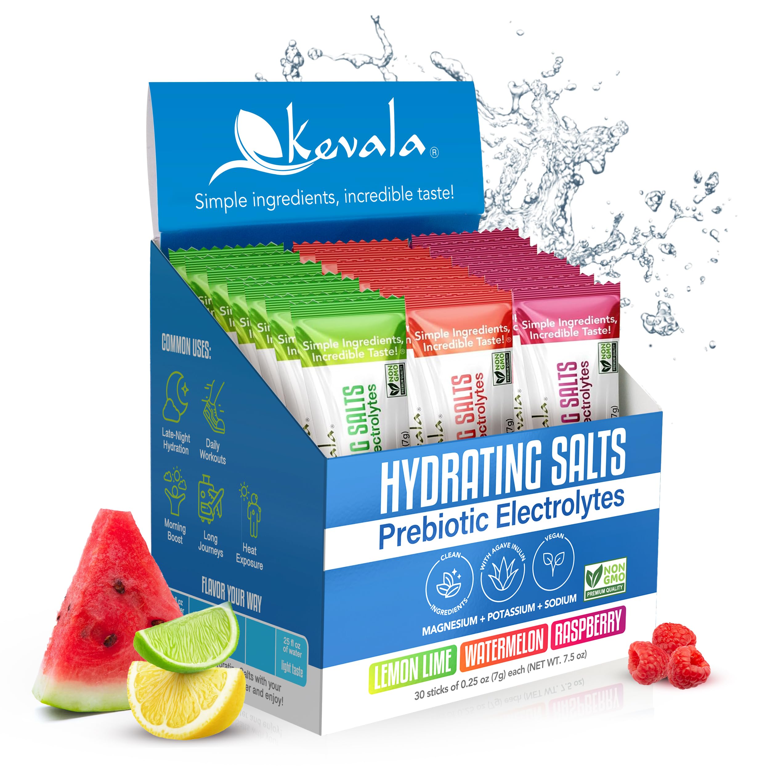 kevala Electrolytes Powder Packets | Sugar Free Drink Mix Packets with Prebiotics, Potassium & Salt Electrolytes for Keto Hydration | Rehydration Support | 1 Pack (30 Sticks)