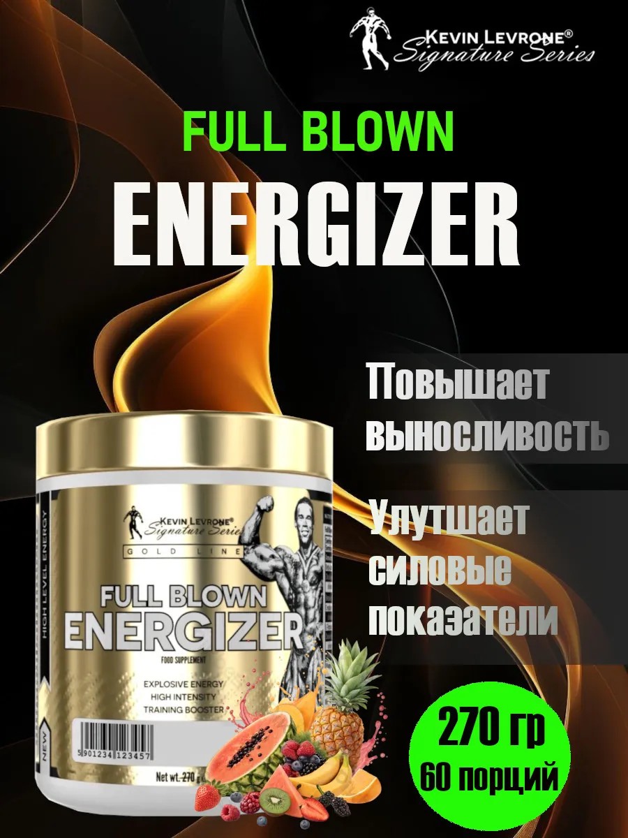 Предтренировочный комплекс Full Blown Energizer 270g от Kevin Levroner – это многокомпонентный предтренировочный комплекс, который обеспечивает стимуляцию, необходимую для интенсивных тренировок, максимально повышает физическую работоспособность, придает силы и энергии. Он содержит эффективные ингредиенты, такие как цитрулин малат, бета-аланин, креатин моногидрат, бетаин, тирозин, холин, ниацин, витамин В6 и кофеин, которые повысят выносливость, увеличат силовые показатели и увеличат рост рост мышечной массы. Full Blown Energizer 270g поможет вам преодолеть плато в тренировках и достичь новых вершин в спортивных достижениях.