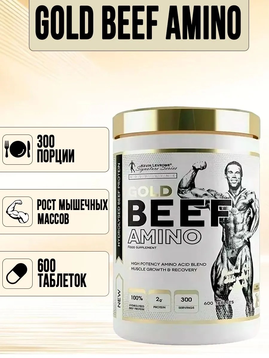 Kevin Levrone Gold Beef Amino - это пищевая добавка, содержащая смесь аминокислот, полученных из говяжьего белка. Каждый флакон содержит 600 таблеток и предназначен для поддержки роста мышц, их восстановления.