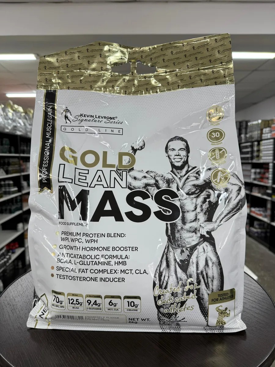 Kevin Levrone Gold Lean Mass — высокобелковый гейнер премиум-класса для эффективного набора мышечной массы и улучшенного восстановления после тренировок. В составе качественный белковый комплекс из изолята, концентрата и гидролизата сывороточного протеина, а также углеводный комплекс (мальтодекстрин, глюкоза) для энергии. Дополнительно продукт содержит моногидрат креатина, CLA, масло MCT, BCAA, L-глутамин, таурин, тестостероновые бустеры ( пажитник, D-аспарагиновая кислота), HMB, L-аргинин и L-орнитин для максимальной поддержки силы, выносливости и жиросжигания.