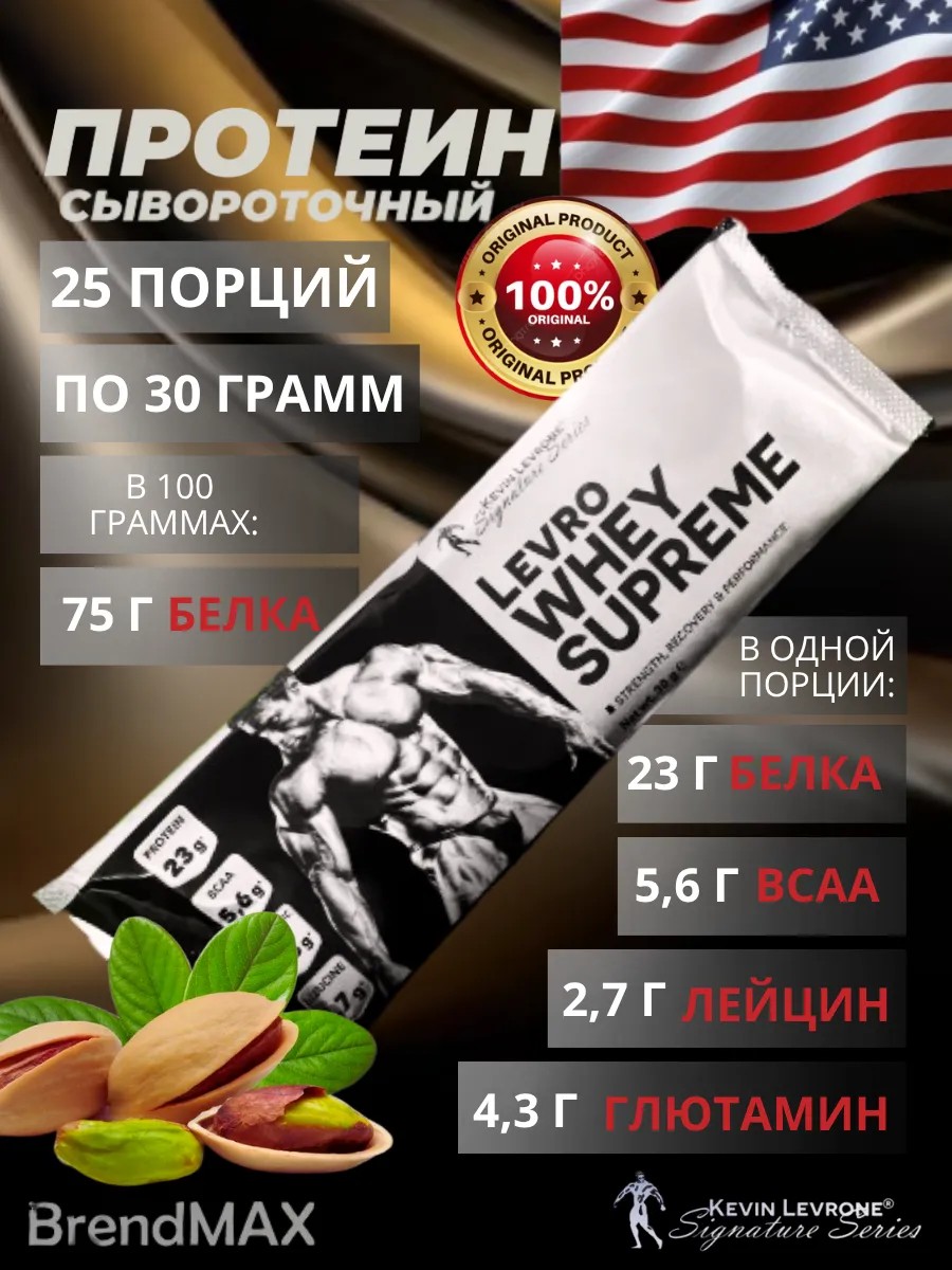 Pistachio-flavored protein. Only original products in our store! Levro Whey Supreme protein from the renowned brand Kevin Levrone is a premium sports nutrition product designed for active people striving to achieve optimal physical fitness.