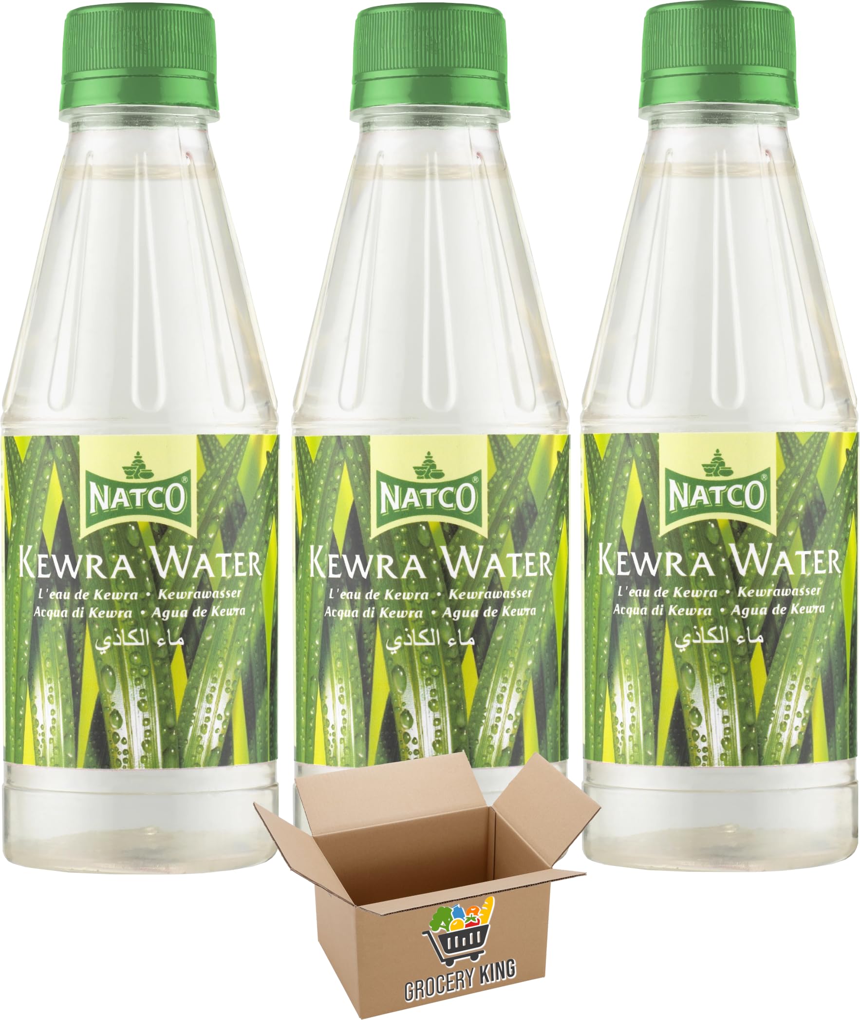 Kewra Kevda Water Bottle 310ml, your go-to source for the exquisite floral essence of screwpine. Also known as pandan water, this essence is derived from distilling pandanus flowers and is cherished for its ability to enhance the flavor of meats, drinks, and desserts in India and Pakistan. Kewra water, made from the distilled extract of kewra flowers, is a beloved ingredient in South Asian and Southeast Asian cuisines. Commonly used to flavor biryanis, curries, sweets, and beverages, it adds a distinctive floral aroma and flavor that elevates dishes to new heights. Each bottle contains the essence of kewra flowers, carefully soaked and distilled to capture their fragrant essence. Whether you're preparing a savory curry or a refreshing drink, Grocery King's Kewra Kevda Water is sure to impart an unparalleled floral aroma and flavor. Choose from variants: 1. Kewra Water 1x310ml or 2. Kewra Water 3x310ml and infuse your culinary creations with the essence of screwpine today! ?? INGREDIENTS Water, kewra extract (0.2%), preservative: potassium sorbate (E202)Includes: 1X Or 3X Natco Kewra Kevda Water Bottles 310ml + 1X Eco Friendly Grocery King Box. Each bottle contains carefully soaked and distilled kewra flowers, capturing their fragrant essence for culinary delight. Adds a unique floral aroma and flavor to biryanis, curries, sweets, and beverages, enhancing their taste profile. Kewra water, made from distilled kewra flower extract, is a staple in South Asian and Southeast Asian cuisines. Derived from distilling pandanus flowers, Kevda water enhances the flavor of meats, drinks, and desserts in India and Pakistan. Kewra Kevda Water Bottle 310ml: Your source for exquisite screwpine essence, also known as pandan water. Choose from variants: 1. Kewra Water 1x310ml or 2. Kewra Water 3x310ml to infuse your dishes with the essence of screwpine. Kewra Kevda Water Bottle 310ml | Screwpine Essence, Pandan Water | Gives Floral Aroma For Drinks & Dishes.