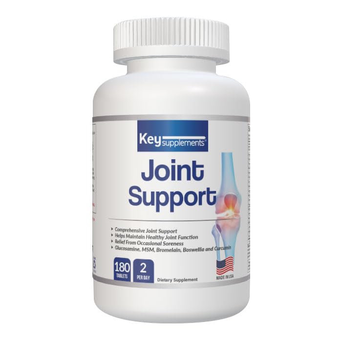 Key Supplements Joint Support - 180 Tablets Support your active lifestyle with Key Supplements Joint Support. Our advanced formula combines powerful ingredients to help maintain healthy joints, enhance mobility, and provide comfort during physical activity. Each tablet is packed with a synergistic blend of Glucosamine, Chondroitin, MSM, and Green Mussel, all working together to promote joint health and flexibility.