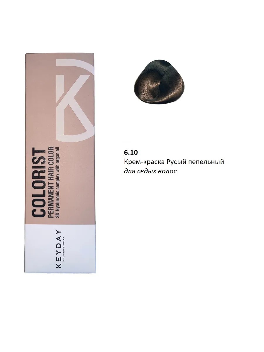Keyday Крем-краска 6.10 Русо -пепельный для седых волос