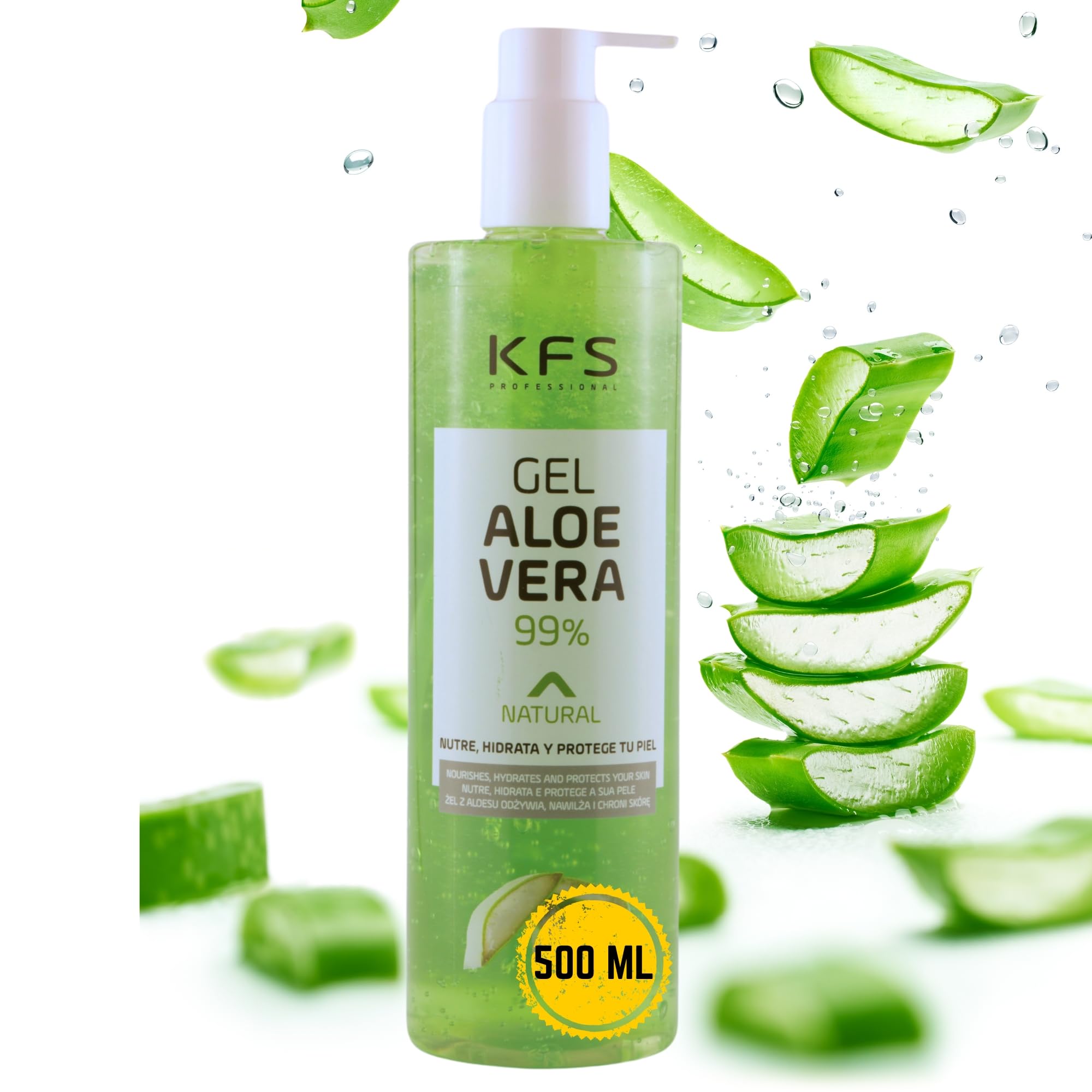 KFS Gel Aloe Vera Pur 99 – Soin Hydratant Multifonction Visage, Corps et Cheveux, Après-Rasage, Après Soleil, Post-Épilation et Tatouage – Texture Non Grasse à Absorption Rapide – 500ml 500 ml (Lot de 1)