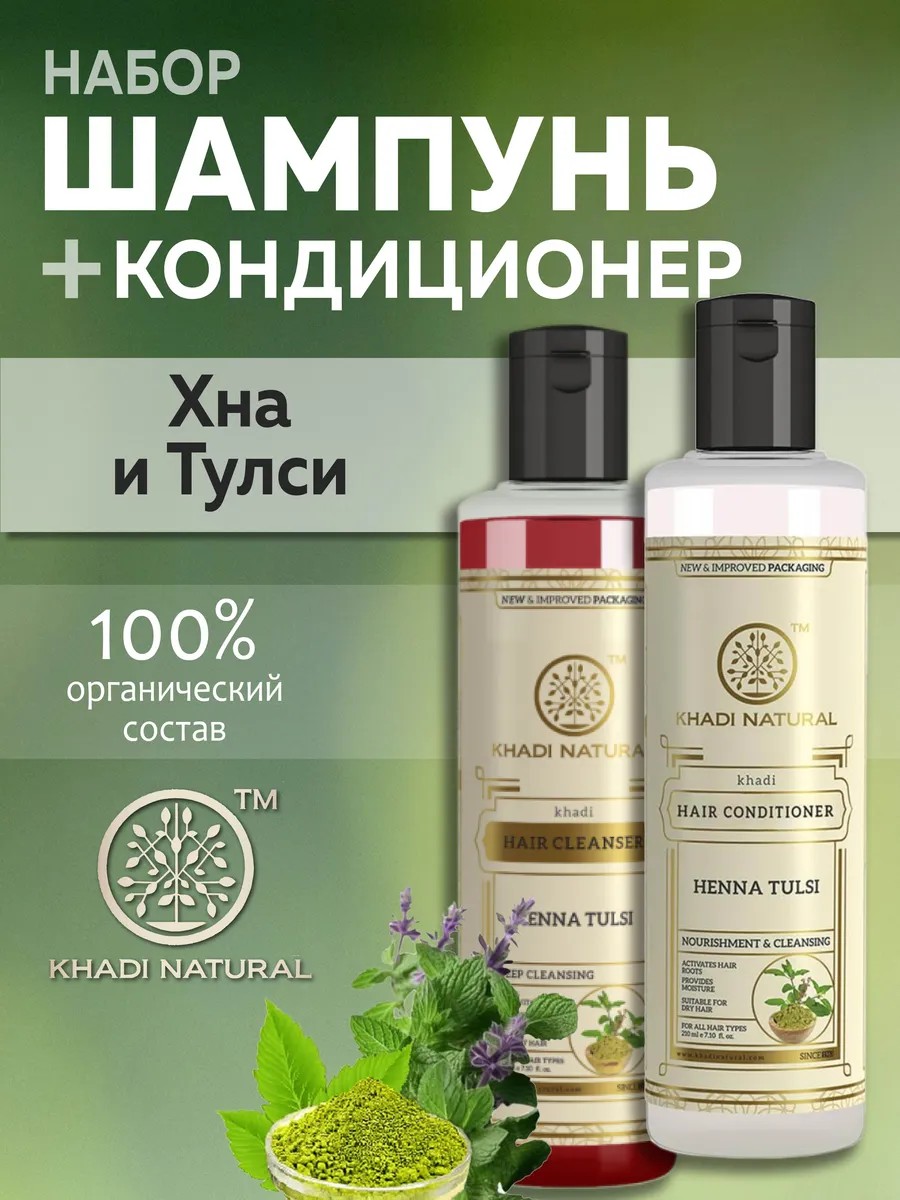 Шампунь и кондиционер травяной Тулси и Хна, Khadi (Индия)