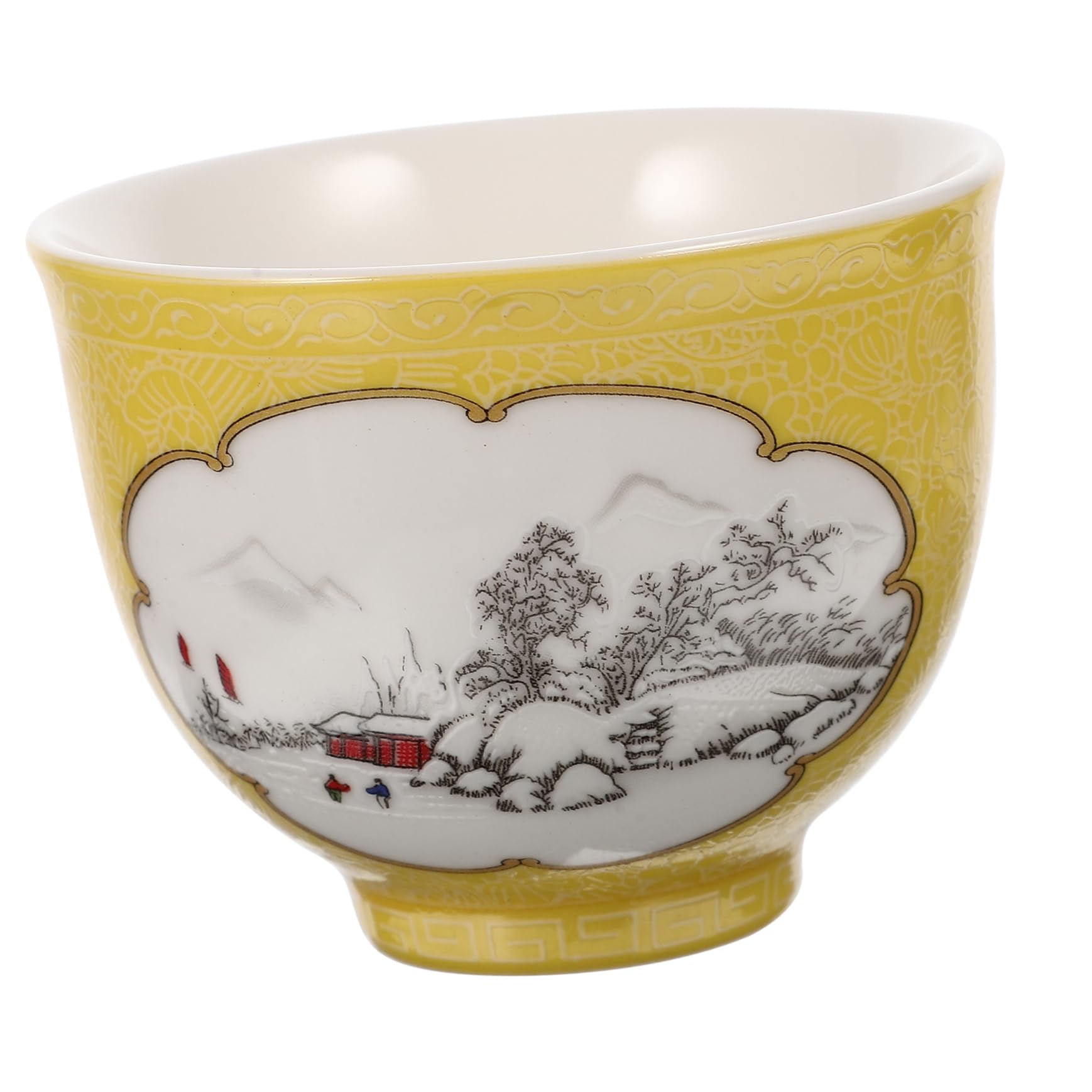 KICHOUSE Ink Painting Teacup Vintage Tea Cups Porcelain Tea Cup Coffee Kung Fu Teaware Office Mini Sake Glass Yellow 7.5x7.5x6cm