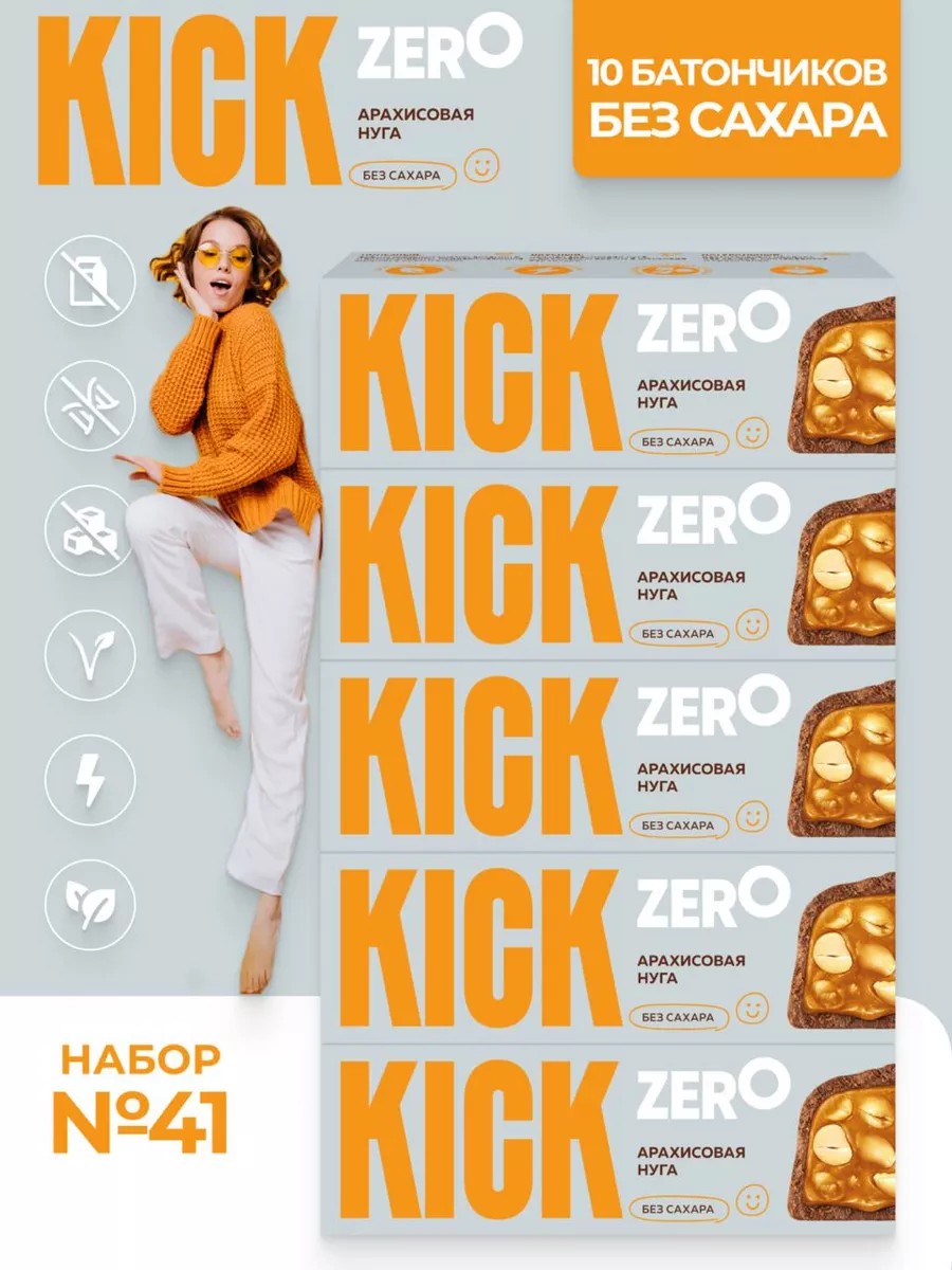 Set #41 - 10 bars, 45 g each. Introducing the KICK ZERO SUGAR FREE bar line.