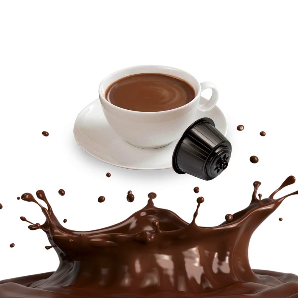 With these capsules, you can prepare a delicious cup of hot chocolate in just a few moments using your Nescafé Dolce Gusto compatible capsule machine. Ingredients: sugar, fat-reduced cocoa powder, glucose syrup, non-hydrogenated coconut fat, whey powder, salt, thickener E412, flavorings, stabilizer E340ii, emulsifier E471. Caution: contains allergens. Dolce Gusto Capsule Features and Compatibility: Dolce Gusto capsules ensure ideal flavor preservation. Their special layered technology isolates the contents from variations in heat and humidity. When stored correctly, the capsules have a shelf life of approximately two years. ( ) Furthermore, the capsule's structure is designed so that the plastic and aluminum layers easily separate from the moist part, facilitating material recycling. The single-dose capsules are packaged in a protective atmosphere in boxes of 8 Dolce Gusto capsules. This ensures maximum hygiene and preserves flavor for a long time. Dolce Gusto capsules can be used with the following machines: Melody, Genio 2, Mini Me, Piccolo, Drop, Stelia, Jovia, Oblo, Circolo (by De'Longhi and Krups), Gustissima (Must), and many others. Trademarks are not the property of Kickkick SRL or affiliated companies. INGREDIENTS Sugar, fat-reduced cocoa, glucose syrup, non-hydrogenated coconut fat, whey powder, salt, thickener E412, flavorings, stabilizer E340ii, emulsifier E471 INSTRUCTIONS FOR USE Dissolve the capsule in hot water using a compatible machine such as Dolce Gusto. See moreKickkick Chocolat compatible Nescafe dolce Gusto - Dosettes au chocolat soluble - 32 capsulesDESCRIPTION DU PRODUIT DESCRIPTION DU PRODUIT Avec ces capsules, vous pouvez préparer en quelques instants une excellente tasse de chocolat en utilisant votre machine à capsules compatible système Nescafè Dolce Gusto Ingrédients : sucre, cacao magro, sirop de glucose, graisses de coco non hydrogénées, sérum de lait en poudre, sel, épaississant E412, arômes, stabilisateur E340ii, émulsifiant E471. Attention : contient des allergènes. Caractéristiques et compatibilité des capsules Dolce Gusto Les capsules Dolce Gusto Pour une conservation idéale de l'arôme. Leur technologie spéciale à couches permet d'isoler le contenu des variations de chaleur et d'humidité. Conservation correcte, les gélules ont une durée de vie d'environ deux ans. ( ) De plus, la structure de la capsule est étudiée pour que les couches de plastique et d'aluminium se séparent facilement de la partie humide, ce qui permet un recyclage facile des matériaux. Les gélules unidoses sont emballées dans une atmosphère auto-protégée en boîtes de 8 capsules Dolce Gusto. Cela permet un maximum d'hygiène et de maintien du goût pendant longtemps. Les capsules Dolce Gusto peuvent être utilisées avec les machines : Melody, Genio 2, Mini Me, Piccolo, Drop, Stelia, Jovia, Oblo, Circolo (de De' Longhi et Krups), Gustissima (Must) et bien d'autres. Les marques déposées ne sont pas la propriété de Kickkick SRL ou d'entreprises connectées. INGRÉDIENTS sucre, cacao magro, sirop de glucose, graisses de noix de coco non hydrogénées, sérum de lait en poudre, sel, épaississant E412, arômes, stabilisant E340ii, émulsifiant E471 MODE D'EMPLOI Dissoudre la capsule dans de l'eau chaude en utilisant une machine compatible comme Dolce Gusto. Voir plus