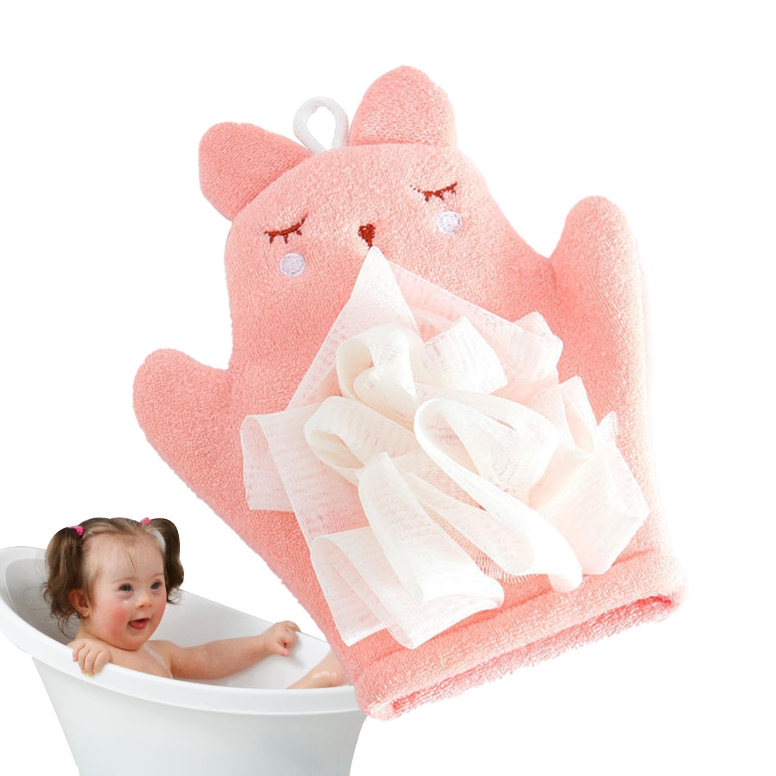 Kid Body Scrubber Boys Body Wash Towel Scrubber Comfortable Kid's Bath Towel Sponge Children's Body Wash Sponge for Gentle Cleansing Pink