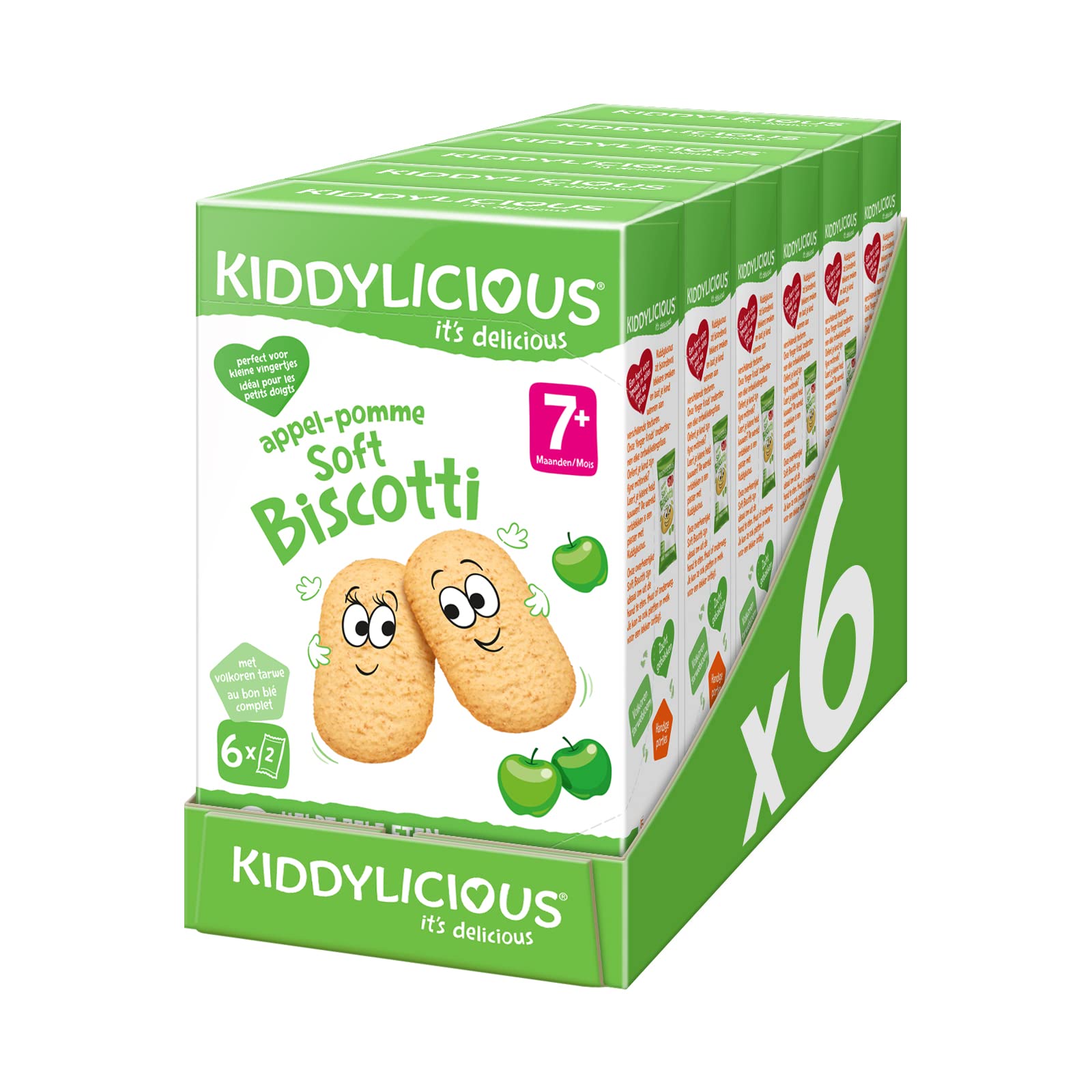 Kiddylicious Soft Biscotti Apple | From 7 Months | Soft Wheat Cookies | 6 Packs of 120g (6 Sachets of 20g) | 720g