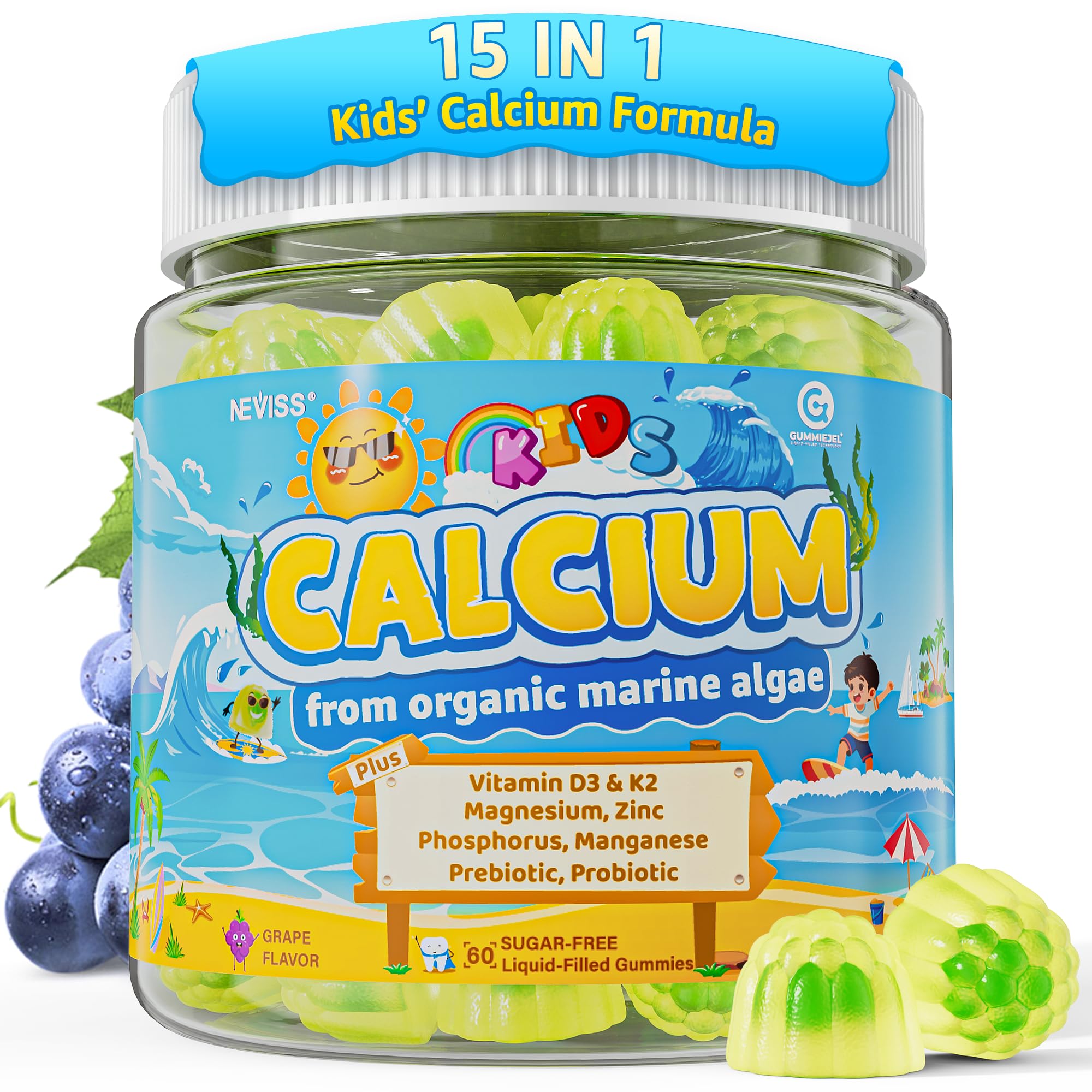 Trusted by Parents, Built on Science: We care as much as you do. All LILICARE supplements are carefully crafted in a certified facility under strict quality standards, our gummies are Non-GMO, sugar-free, gluten-free, and free from artificial colors or preservatives. Every batch is tested for purity and safety, ensuring what you give your child is as trustworthy as it is tasty. Healthy habits start here—with a clean, safe gummy that parents trust and kids enjoy every single day. Funny, Tasty Nutritious Treat for Kiddos: Say goodbye to supplement struggles! These liquid-filled gummies(with GUMMIEJE Technology for nutrients stability and absorption)are packed with a juicy grape flavor and soft jelly center that make healthy nutrition taste like a treat. Even picky eaters can't resist! Parents love how easy it is, kids love how yummy it tastes. It's a win-win moment that turns nutrition time into bonding time, with every sweet, chewy bite full of care. Complete Formula for Growing Champs: This isn't just calcium—it's a full spectrum of essential nutrients for growing bodies. 15 vital nutrients for overall growth and wellness include Calcium, Vitamin D3, K2, Magnesium, Phosphorus, plus probiotics and prebiotics. D3 and K2 help calcium go exactly where it's needed—into strong bones and teeth—while Magnesium and Zinc fuel growth, focus, and immunity. This powerhouse formula made to keep kids active, balanced, and thriving from morning to bedtime. Build Strong Bones Bright Smiles: Strong bones and healthy teeth start early! Our calcium gummies support the foundation of your child's growth—helping bones stay sturdy and teeth stay strong as they run, jump, and explore the world. Regular calcium intake can make a lifelong difference, helping kids stand tall with confidence and smile wide every day. From playground adventures to classroom moments, each gummy helps build the strength that supports their happiest, healthiest selves. Why Algae Calcium is BETTER for Kids Teens? LILICARE algae calcium use marine red algae sustainably hand harvested in the atlantic ocean. This natural highly bioavailable calcium form provides 3X absorption to traditional calcium carbonate and calcium citrate supplements(made from limestone), algae calcium is absorbed more efficiently and gentler on kids tummy. It's pure, plant-based, and ocean-born—giving your little one the clean nutrition they deserve for healthy growth every day.