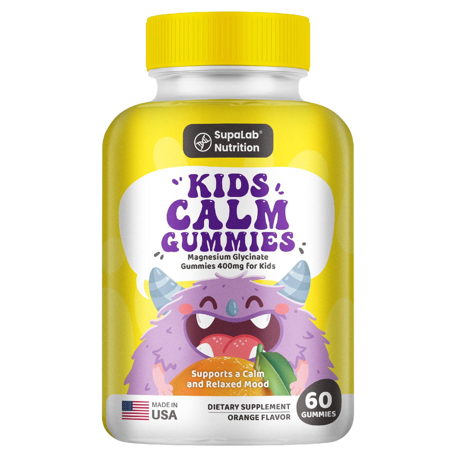 Kids Calm Magnesium Gummies for Relaxation Claming – Orange Flavor, 60 Count