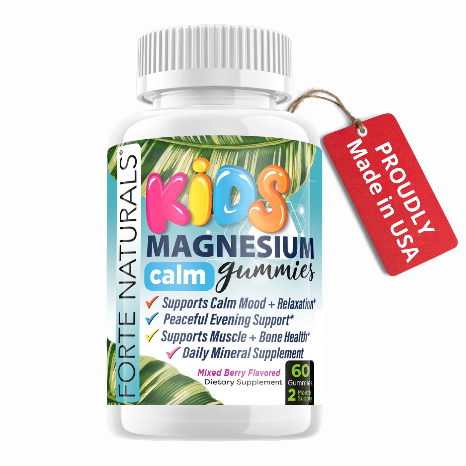 EXERCISE PERFORMANCE RECOVERY for Post WORKOUT Support EASE SORENESS aching joints after exercise. Perfect for playtime and growing kids!. MAGNESIUM NATURAL COLON CLEANSE DETOX - Stool softening, bloating support and occasional constipation relief for kids. FORTE NATURALS KIDS Magnesium Gummies for constipation. KIDS MAGNESIUM GUMMIES FOR SLEEP BEDTIME can be used by children ages 4 years old or older, or as directed by a healthcare professional. FAST ABSORPTION SPECIALLY FORMULATED FOR SENSITIVE STOMACHS - FORTE NATURALS KIDS MAGNESIUM CALM GUMMIES are supplements Made in the USA and are always 3rd Party Gluten Free Tested, NON-GMO, Vegan, Keto Paleo Friendly. FORTE NATURALS KIDS MAGNESIUM Citrate Gummies - Contains 60 plant pectin based (Gelatin FREE) delicious multi berry gummies. Every bottle contains 60 gummies 60 day supply 1 gummy per day.