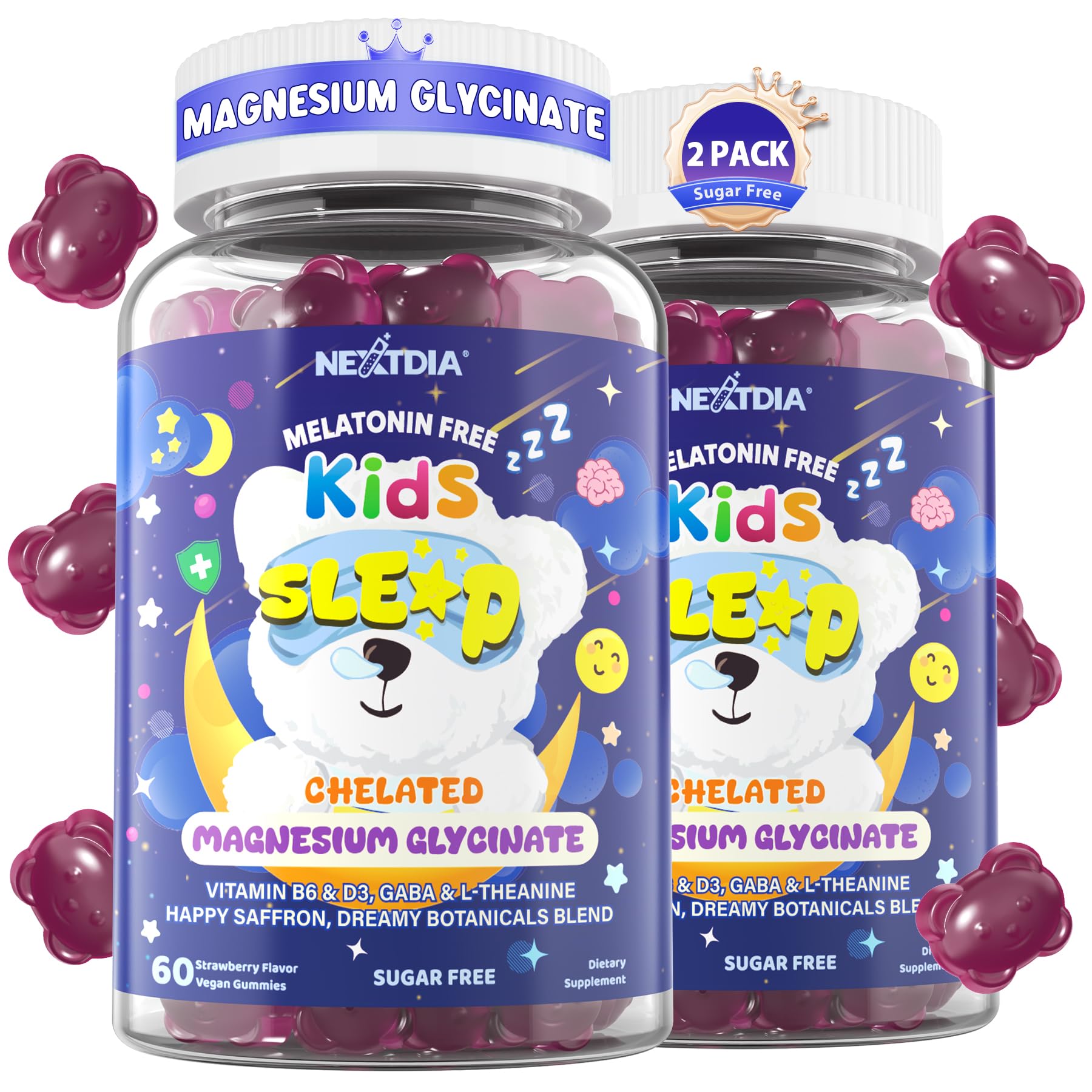 NO MORE MEDICINE WARS CLEAN, KID-APPROVED TASTE: No more fighting to get your kids to take their vitamins! These soft, delicious gummies feature a natural strawberry flavor that kids actually look forward to every night. Crafted with pure ingredients, they are free from GMOs, gluten, and artificial dyes. You get the peace of mind of a clean label, and they get the Magnesium support they need for a perfect night's sleep. GROWTH IMMUNITY THE ALL-IN-ONE NIGHTTIME BOOST: While they dream, their body is hard at work growing. We've infused our Magnesium gummies with a Nighttime Dream Berry Nut Blend (Tart Cherry, Goji Berry, and Walnut) and Vegan Vitamin D3. This nutrient-rich magnesium gummies for kids formula supports a strong immune system and healthy growth, acting as a "multitasking" nighttime insurance policy for your child's health. WAKE UP HAPPY MAGNESIUM SAFFRON BLISS: Say goodbye to "grumpy morning" tantrums and school-day struggles. By combining Magnesium with Premium Saffron Extract and GABA, our magnesium glycinate gummies support emotional balance and a stabilized mood before the lights go out. Paired with Active Vitamin B6 (P-5-P), this kids magnesium gummies formula helps your child wake up feeling refreshed, cheerful, and ready to conquer the school day. SOOTHE RESTLESS LEGS TRIPLE MAGNESIUM POWER: Growing bodies often get restless! If your child tosses and turns due to nighttime discomfort, our premium Triple Magnesium Complex (Glycinate Chelate, Malate, and Citrate) is here to help. These highly absorbable forms of Magnesium work to relax tired muscles and support the nervous system, and encourage natural sleep rhythms, ensuring a deep, uninterrupted slumber for your little one. MELATONIN-FREE KIDS SLEEP GUMMIES GENTLE BEDTIME CALM: Stop the nightly "one more glass of water" excuses and screen-time restlessness. Our Melatonin-Free magnesium glycinate gummies for kids use a soothing blend of L-Theanine, Lemon Balm, and Chamomile to naturally quiet busy minds without the worry of morning grogginess. It's the perfect, non-habit-forming ritual to help your child drift off into a peaceful sleep, giving you back your quiet evening.