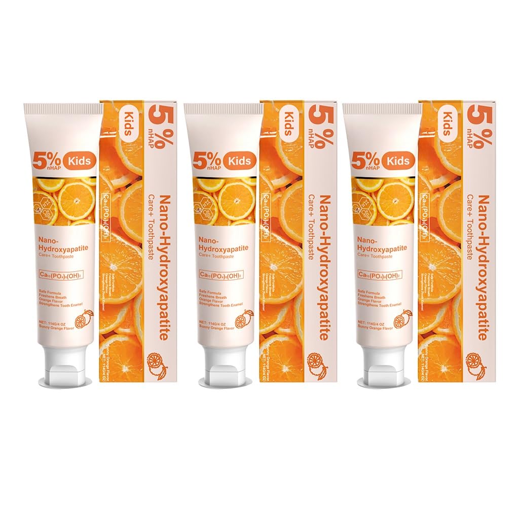 Kids Oral Care Toothpaste Orange Flavor - Teeth Cleaning Brightening & Fresh Breath Gentle Mouth Care for Children Easy to Use(3PCS)