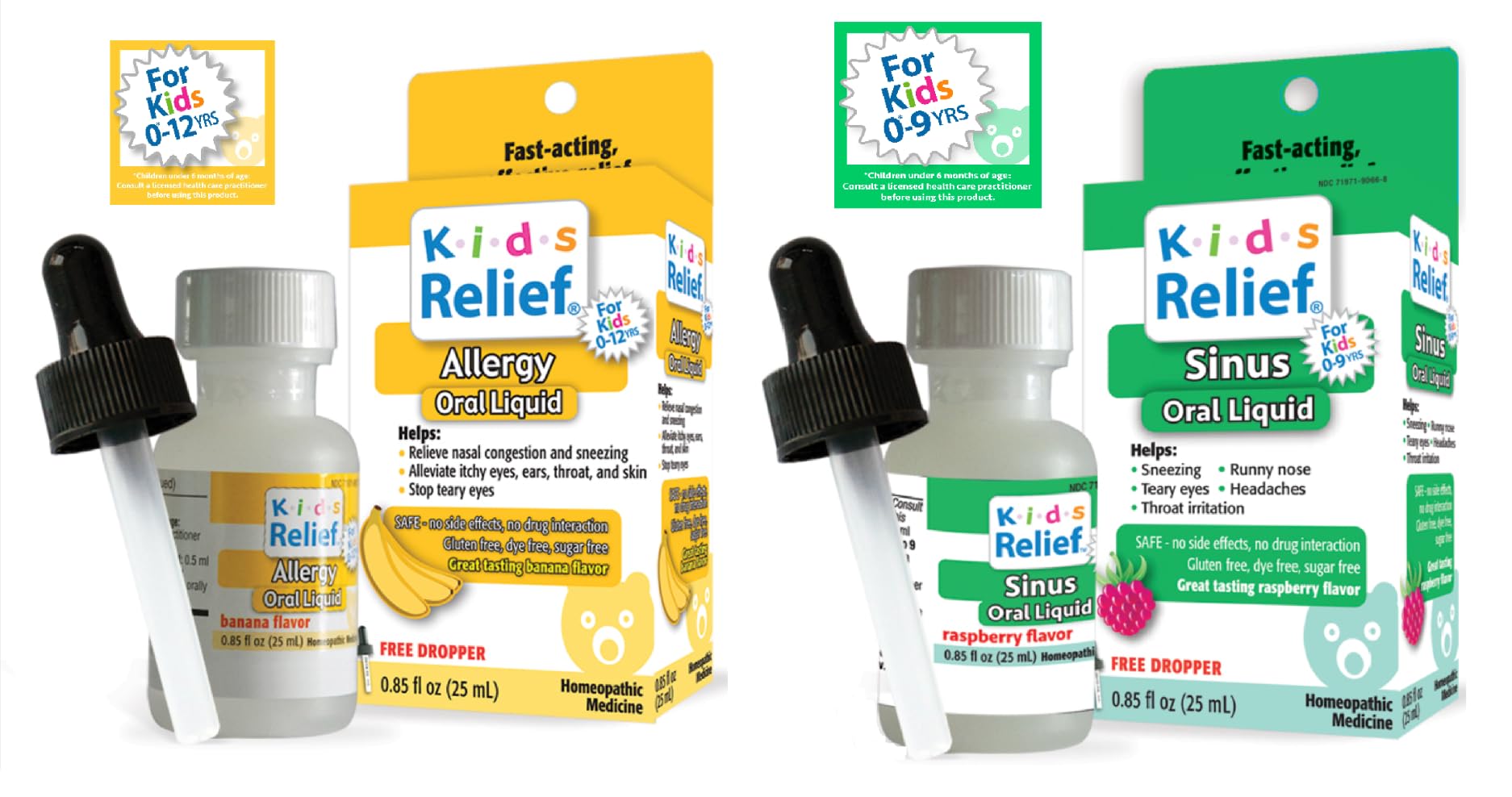 Kids Relief Allergy and Sinus Bundle Oral Liquid Formulas with Dropper for Chidren 0 to 12 Years Old 0.85 fl oz Each