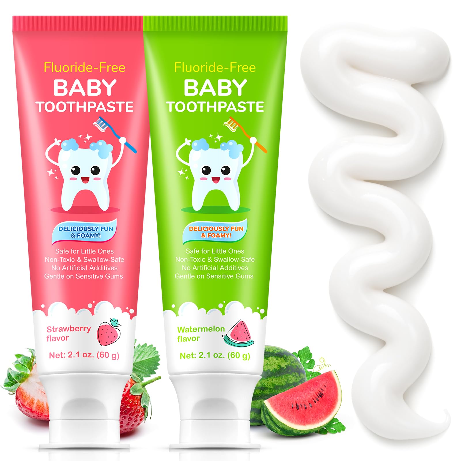 Easy to Use: Brush thoroughly after meals or at least twice per day under parental supervision for a brighter smile that feels as good as it looks. Works Brilliantly: Kids toothpaste Variety Pack helps polish and brighten little smiles. Safe to Swallow – We've designed this toothpaste for kids, we've made sure that only friendly ingredients are included meaning it's safe to swallow!. Kids Favorite Watermelon and Strawberry Flavoured: Natural formulation.Enjoy rocking natural flavors like wild strawberry and watermelon that will surprise and delight your child's taste buds. Fluoride Free: Say no to fluoride and yes to effective decay prevention our kids natural toothpaste pack, it is safe for ages 2 and up and is free of dyes, artificial sweeteners, flavors, preservatives, and is gluten free and vegan. Kid-Friendly Toothpaste: Fluoride free toothpaste formulated for children with gentle herbal ingredients. Gently protects baby teeth, watermenlon and straberry flavor, cleans teeth without irritation and helps kids develop good brushing habits while making brushing a fun daily routine.
