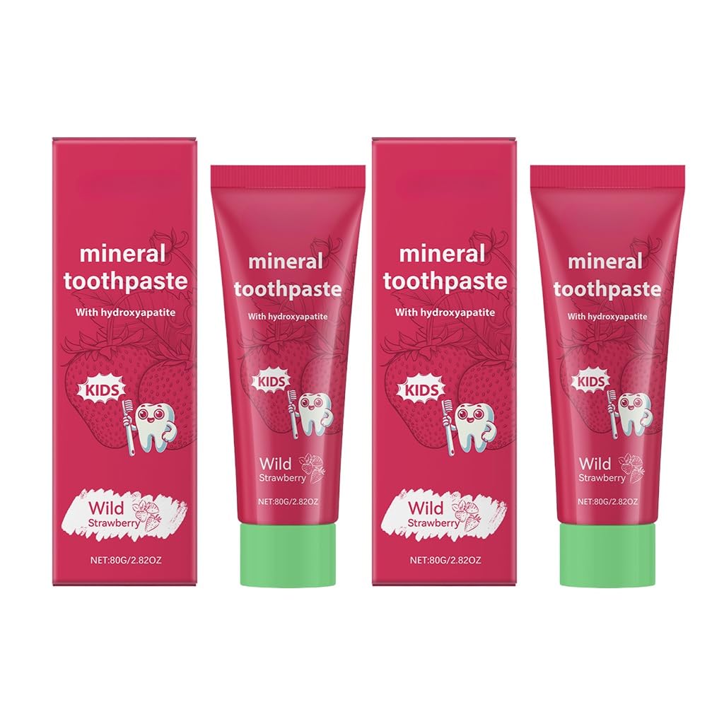 Kids Toothpaste Strawberry Flavor - Gentle Oral Care Teeth Cleaning Enamel Protection Reduces Stains for Children(2PCS)