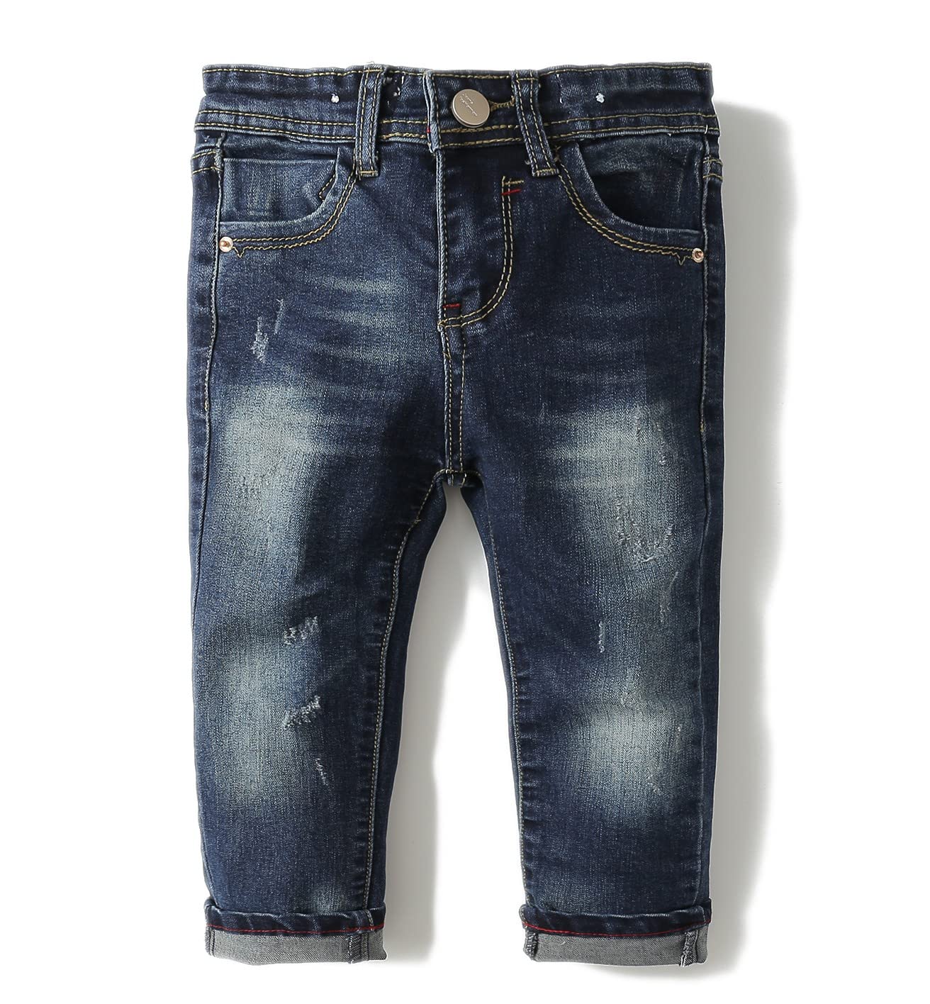 KIDSCOOL SPACE Baby Girl Boy Slim Jeans Little Kid Elastic Band Inside Ripped Denim Pants 2-3 Years Dark Blue-2098