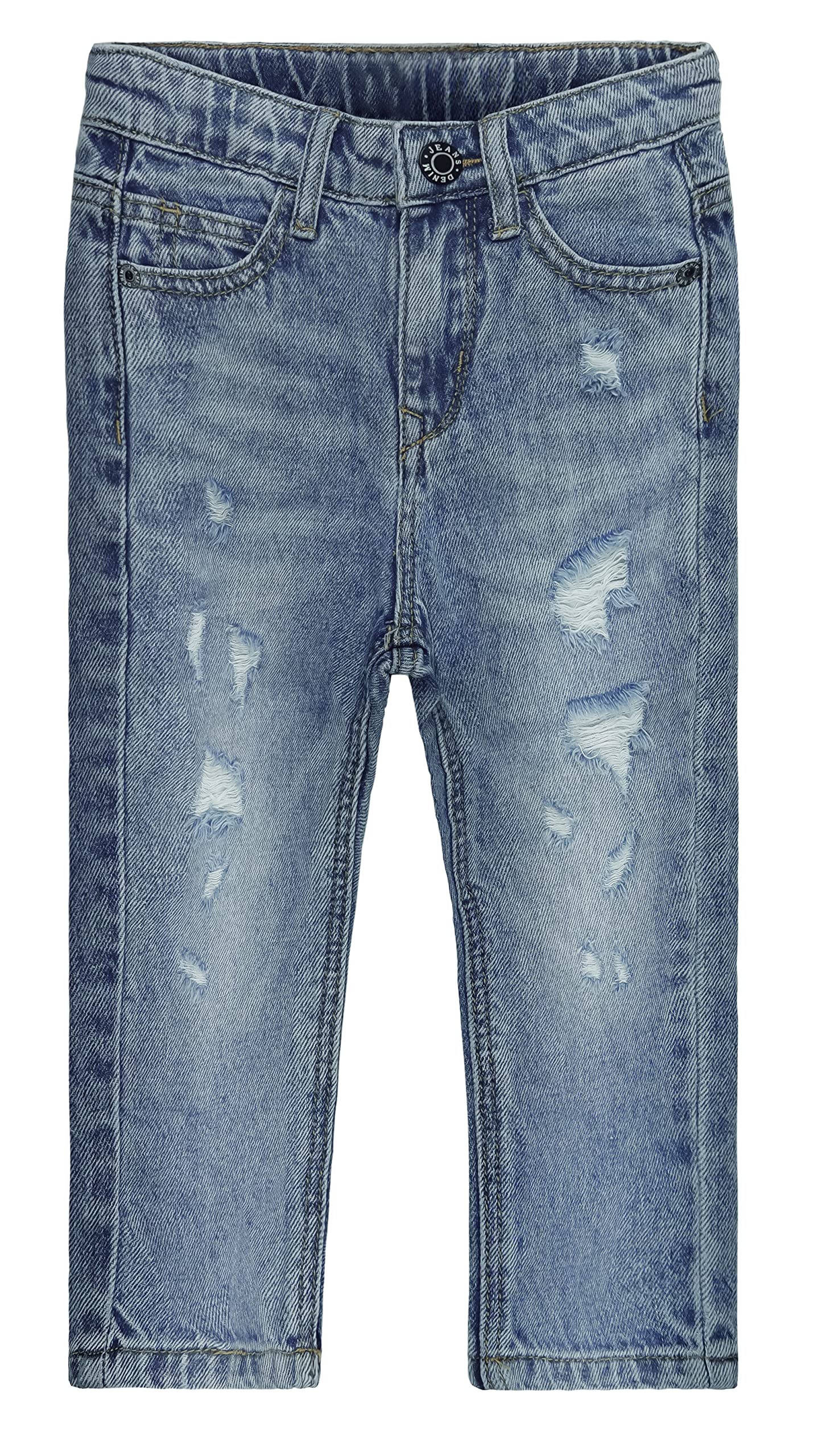 KIDSCOOL SPACE Baby Little Boys Jeans Elastic Band Inside Straight Fit Ripped Denim Pants 2-3 Years Blue-2490
