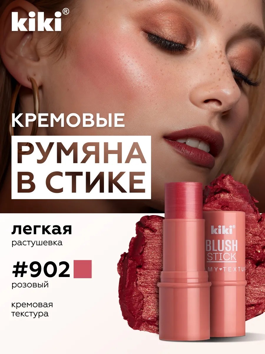 The new KIKI BLUSH STICK cream blush is the perfect product for everyday makeup. This compact stick blush allows you to easily apply the desired shade to the desired areas of the face, highlighting the skin's natural freshness and healthy color. Its soft texture allows for effortless blending, ensuring even color distribution and all-day wear. The blush can be used without a brush—simply swipe the stick over the skin and lightly blend with your fingers or a special brush. This format is especially convenient for travel or when you need a quick touch-up on the go. This cream blush highlights the desired areas of the face, creating a natural glow and defining contours. This budget-friendly product combines practicality with the quality of expensive makeup. It's perfect for both beginners and seasoned makeup enthusiasts. KIKI BLUSH STICK cream blush allows you to create a subtle daytime look or accentuate your evening makeup. The stick format makes it easy to use and compact – it fits easily even in a small makeup bag. No special application skills are required: simply swipe the stick over the desired areas of the face and blend the color for a natural shade. Cream blush is an excellent choice for those who value ease and speed of makeup application without sacrificing the quality of the result. It will highlight cheekbones, give your face a fresh look, and enhance your natural beauty. The product's long-lasting effect ensures that the effect lasts until evening, even with an active lifestyle. Use KIKI BLUSH STICK on its own or as a complement to other makeup – it pairs beautifully with foundations and powders. The convenient stick format allows you to always have it on hand for quick makeup touch-ups throughout the day. This cream blush is ideal for those who want to look well-groomed every day without the hassle.
