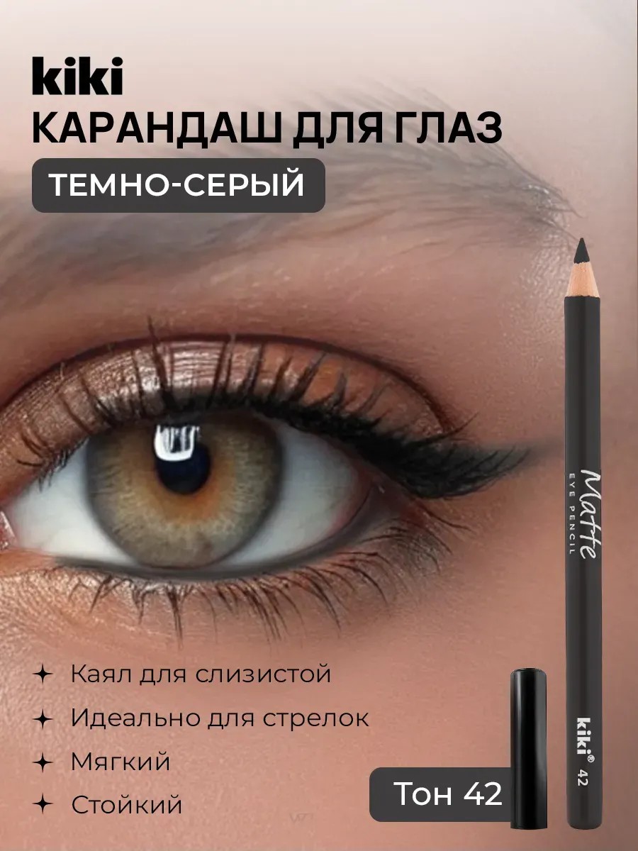 Kiki Matte Eyeliner is your essential assistant in creating the perfect look. This gray eyeliner pencil allows you to create a beautiful graphic or smudged winged smoky eye, while the contour pencil will highlight the uniqueness and beauty of your eyes. This soft eyeliner pencil won't scratch or damage delicate skin. Thanks to its high pigment content, the long-lasting wax pencil delivers rich color after just one application and lasts all day. This wax kajal is easy to adjust and blend. It's suitable for shading the mucous membrane, interlash lines, the space between lashes, and the inner and lower eyelids. It's also suitable for creating eyeliner, hooded eyelids, and blending. Kiki women's decorative cosmetics are your essential assistant in creating a unique style and look! The delicate shades in the brand's line are suitable for girls and teenagers. A great gift for your beloved girls and women, sisters, daughters, and friends, or for teenagers on their birthdays and other holidays. A great gift for Mother's Day, Teacher's Day, Educator's Day, and March 8th.