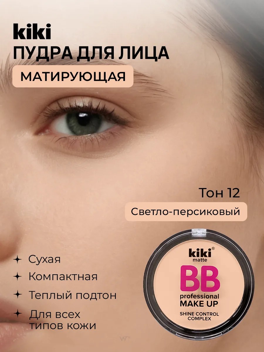Матирующая пудра для лица Kiki BB Professional Make up надежно матирует кожу, скрывает несовершенства и убирает жирный блеск. Пудра выполняет две важнейшие функции — матирование и закрепление макияжа. Пудра с эффектом фотошопа выравнивает тон кожи и маскирует недостатки, при этом, благодаря своей легкой и невесомой текстуре, не утяжеляет макияж. Компактная пудра поместится в любой сумочке, позволяя вам поправить макияж в важные моменты дня, где бы вы находились. Матовую пудру удобно наносить с помощью кисти, спонжа или пуховки. Фиксирующая пудра подойдет для любого типа кожи: жирной, сухой, чувствительной, комбинированной и проблемной. Пудра представлена в бежевом оттенке. Фиксирующая пудра надежно закрепит ваш макияж и станет идеальным финишем для его завершения и фиксации. Бархатная финишная пудра фиксатор не забивает поры и не стягивает кожу, оставляя комфортное ощущение. Сатиновая мелкодисперсная текстура пудры не подчеркивает несовершенства, шелушение кожи. Стойкая закрепляющая пудра корректор создает натуральный сглаживающий эффект выравнивания. Может быть использована как зимняя пудра, так и универсальная для любого времени года. Женская декоративная косметика Kiki – ваш незаменимый помощник для создания уникального стиля и образа! Отличный подарок для ваших любимых девушек и женщин сестры дочки мамы и подруги. Презент на День матери, День учителя, День воспитателя, 8 марта.
