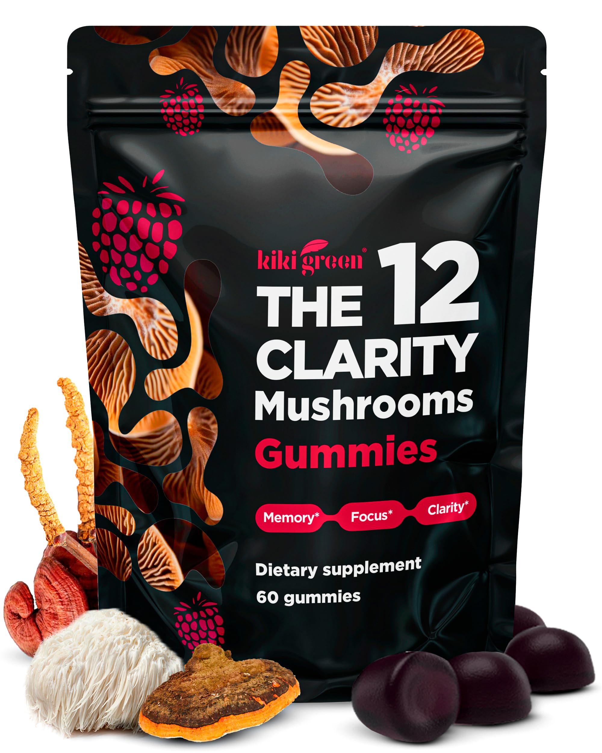 KIKI Green 12 Mushroom Supplement Gummies - Lion's Mane Cordyceps Chaga Reishi Turkey Tail & 7 More for Memory Focus Immunity - 60 Mushroom Gummies for Adults with Raspberry Flavor 10:1 Extract 12 Mushrooms Gummies 60