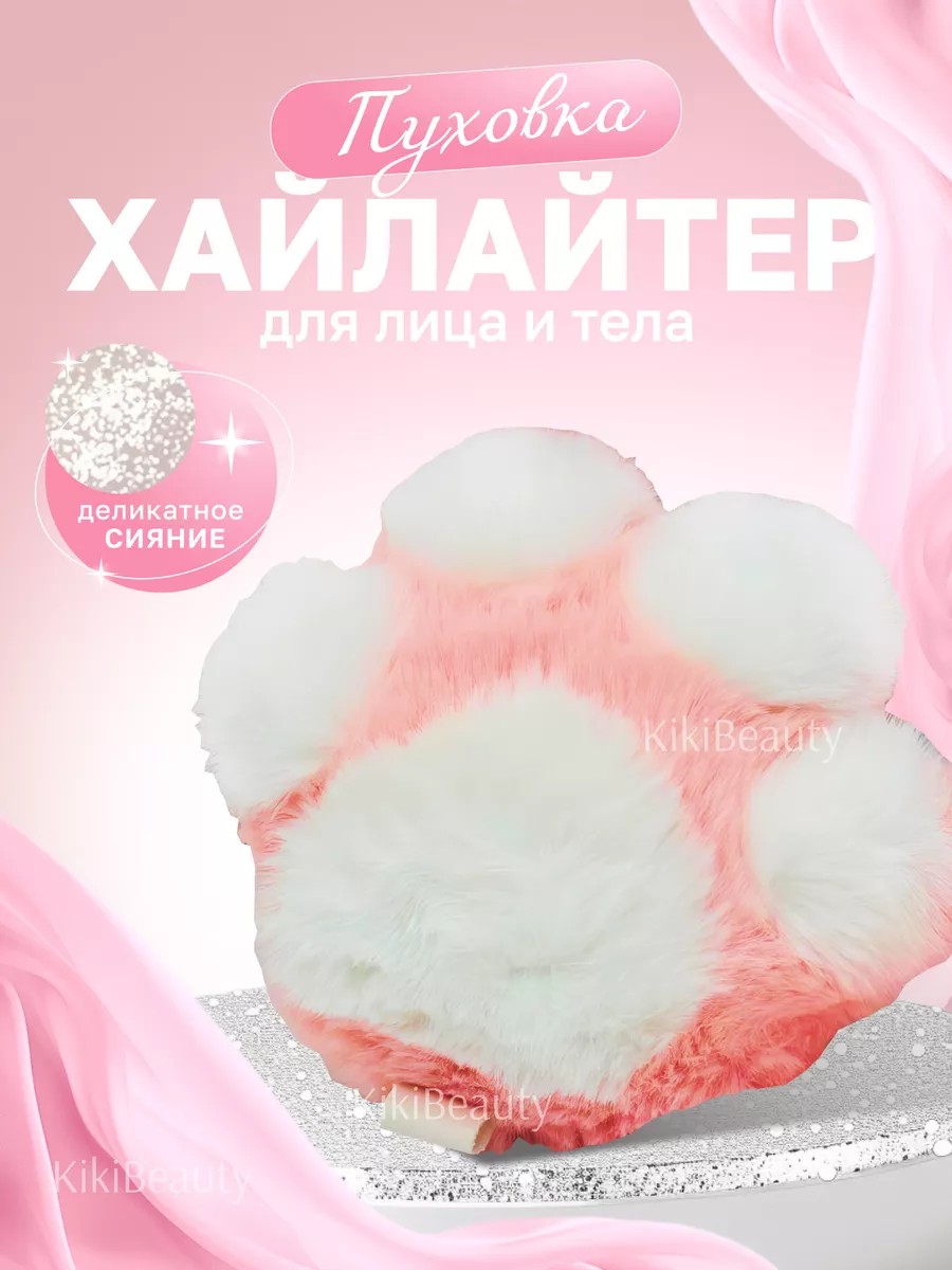 KikiBeauty Хайлайтер рассыпчатый для лица и тела пуховка лапка