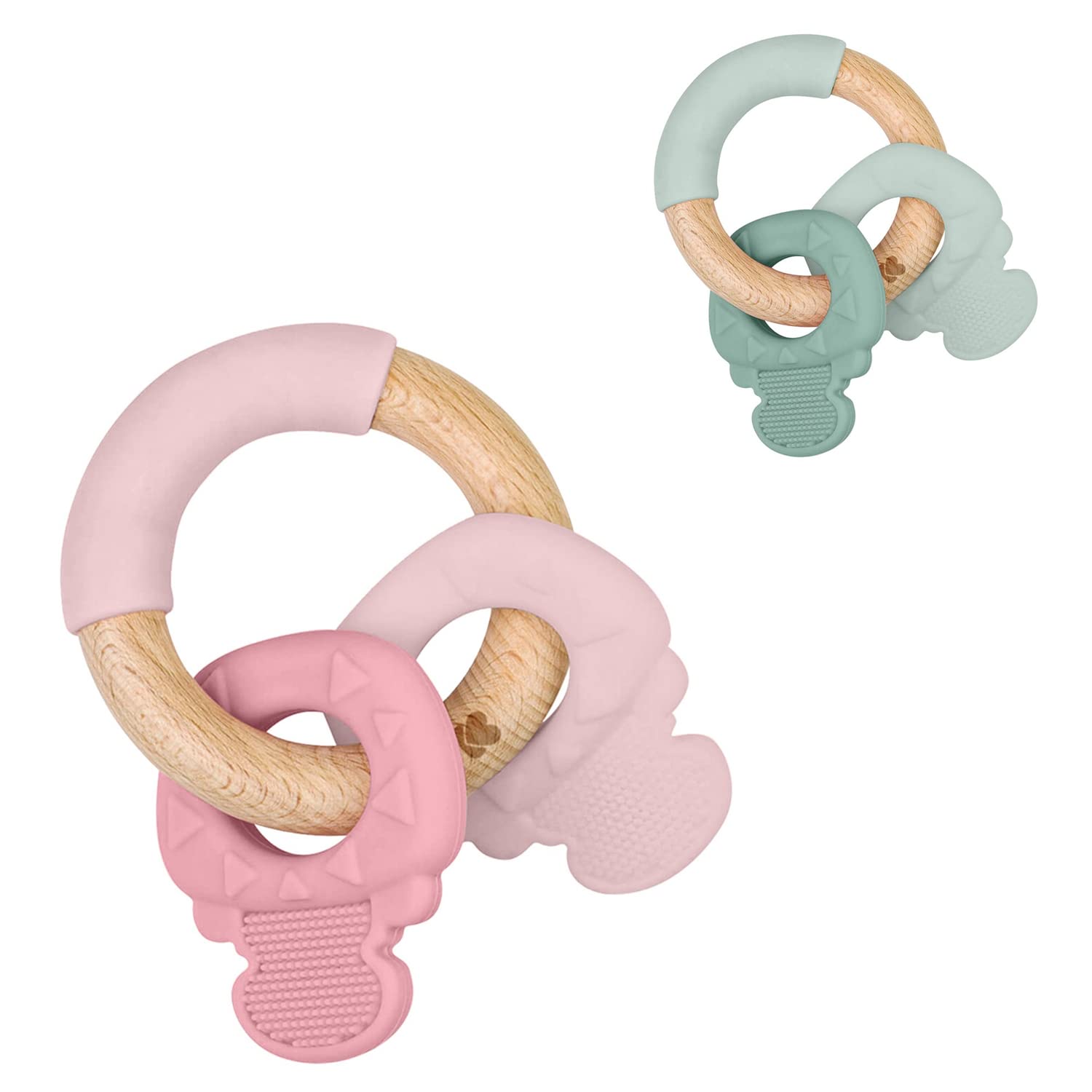 Kikkaboo Beißring Schlüsselbund, Silikon, Buchenholz, Zahnungshilfe, Greifling, Farbe:rosa