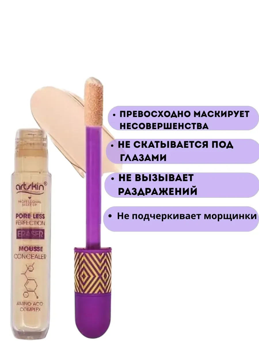 | Действие | маскирует прыщи; скрывает темные круги и синяки в области под глазами; скроет следы недосыпа и несовершенства кожи |