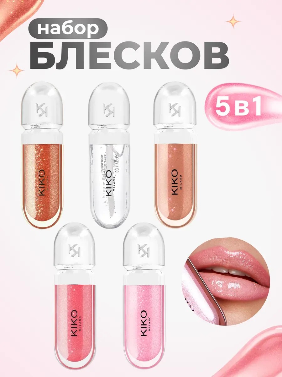 Представляем вашему вниманию идеальный подарок - набор блесков 5в1 от Kiko Milano. Этот набор не только придает губам невероятное сияние, но и заботится о них, обеспечивая питание, увлажнение и длительную стойкость.