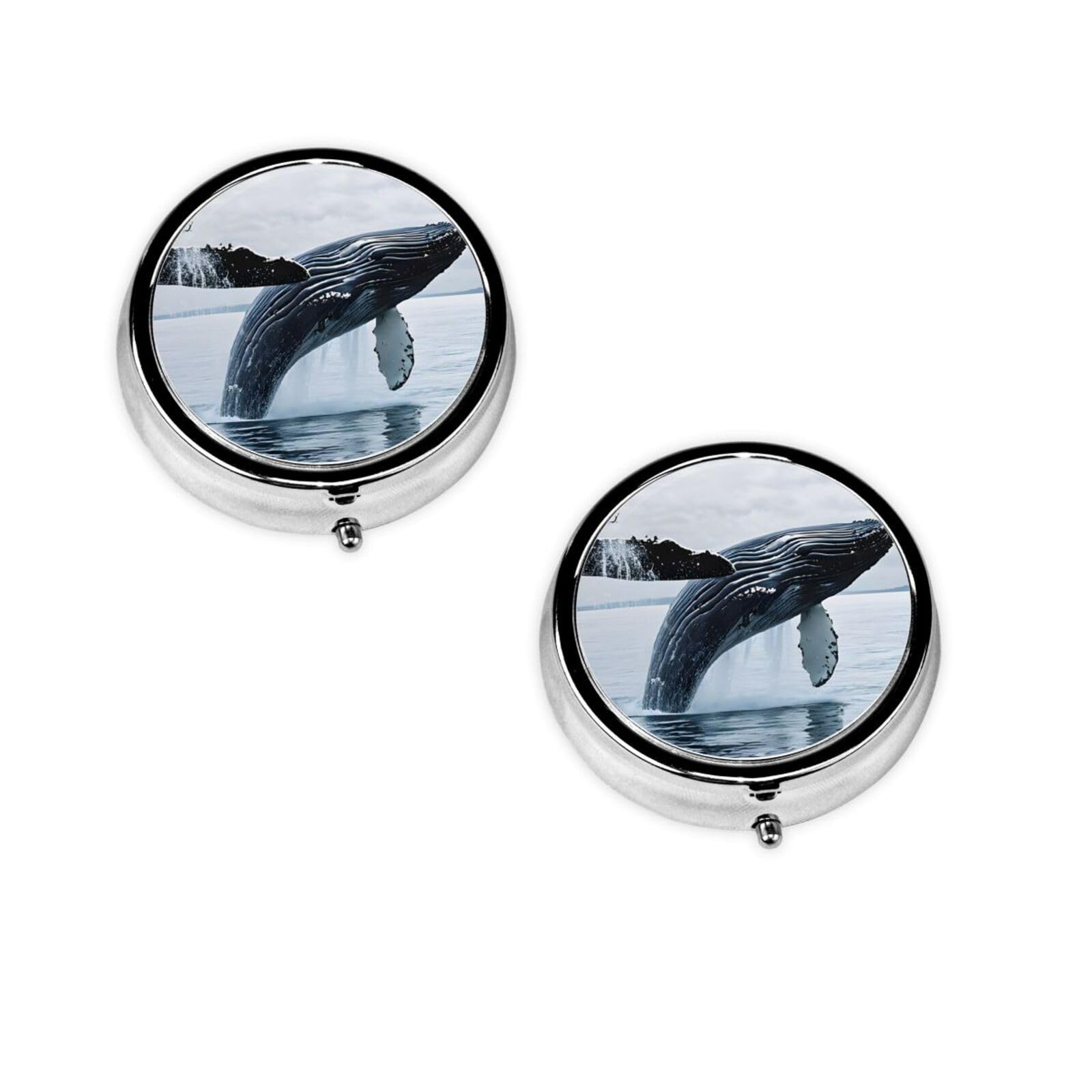 (Killer Whale) Round Pill Box 3 Compartment Pill Box Mini Decorative Pocket Purse Portable Travel Medicine Tablet Vitamin Holder Organizer Pill Case