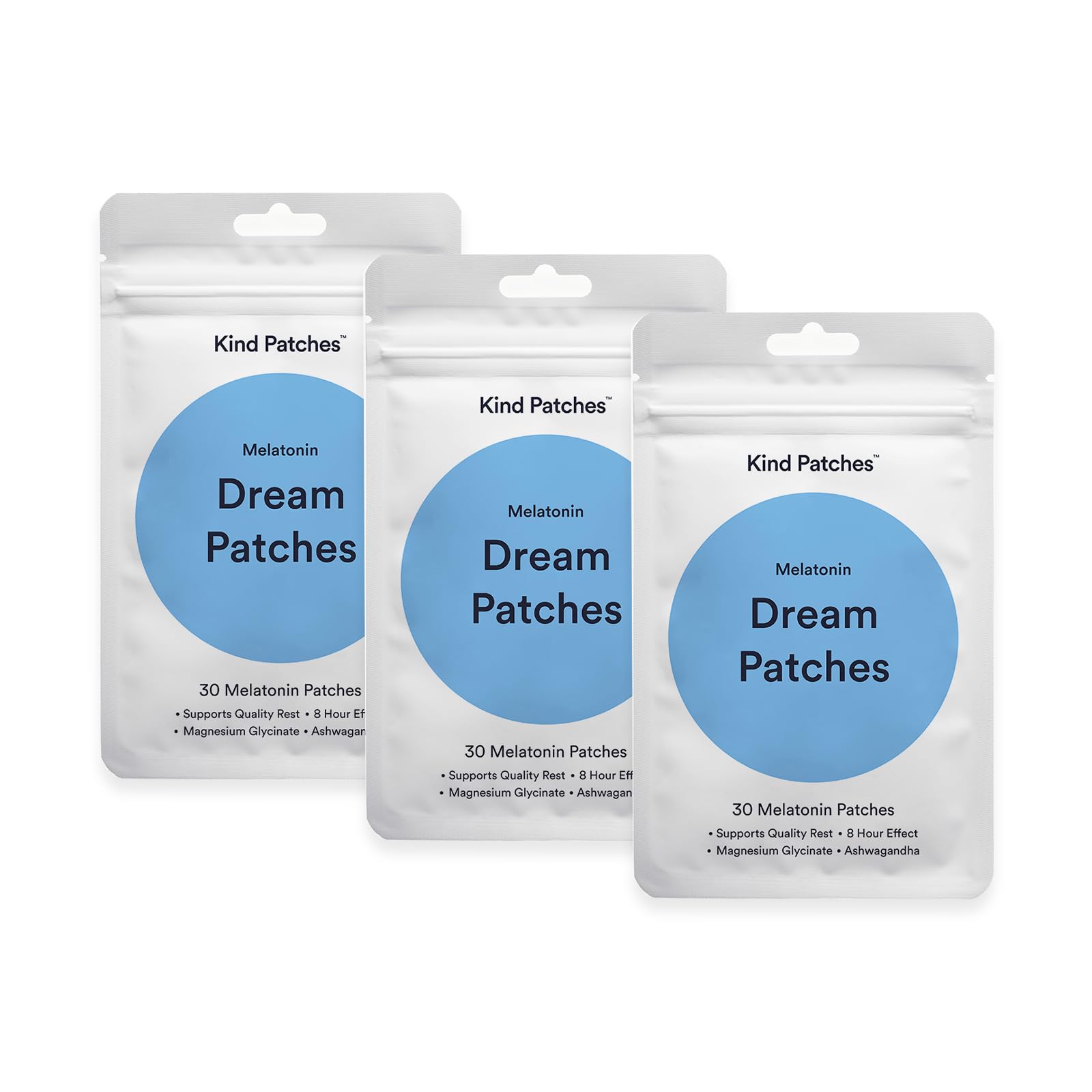 Kind Patches Melatonin Dream - Sleep Patches for Adults - Sleep Aid with Ashwagandha to Improve Rest - Overnight Release - 3 Pack 90 Pieces