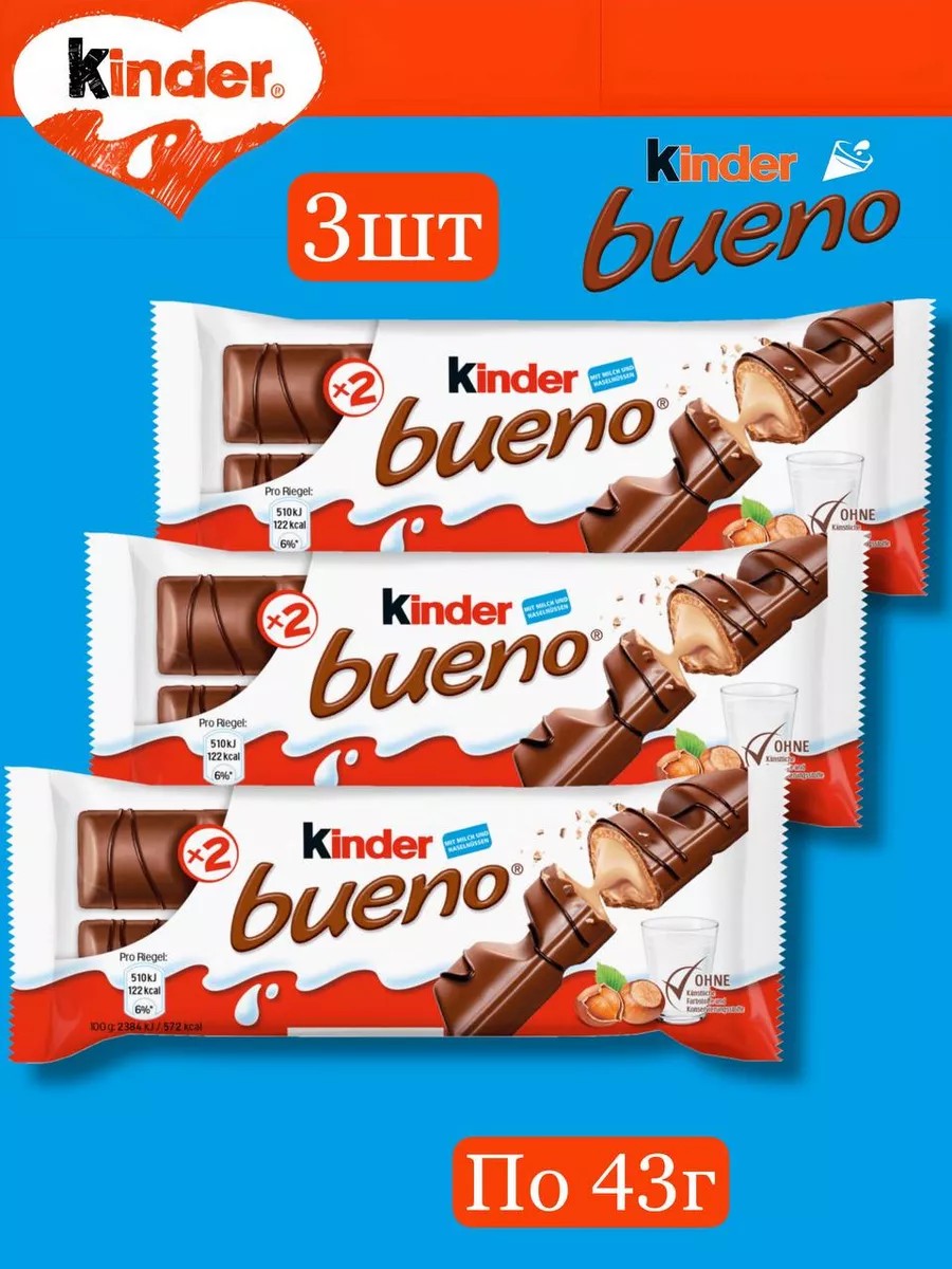 KINDER Батончик Kinder Bueno вафельный в молочном шоколаде 43г x3шт