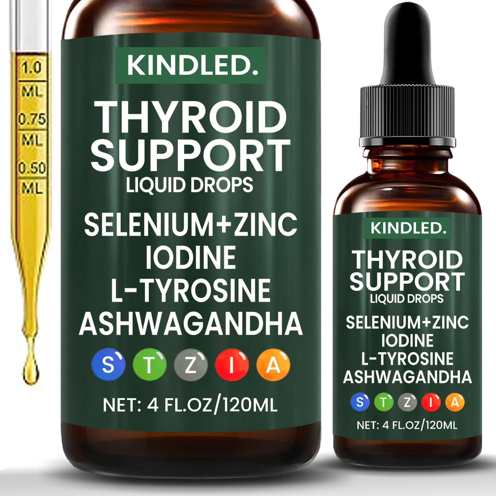Kindled Thyroid Support Drops Thyroid Support for Women & Men | Selenium Zinc Iodine L-Tyrosine Ashwagandha Liquid Drops Thyroid Bloom Liquid | Body Balance & Support - 4 FL.OZ (1PCS)