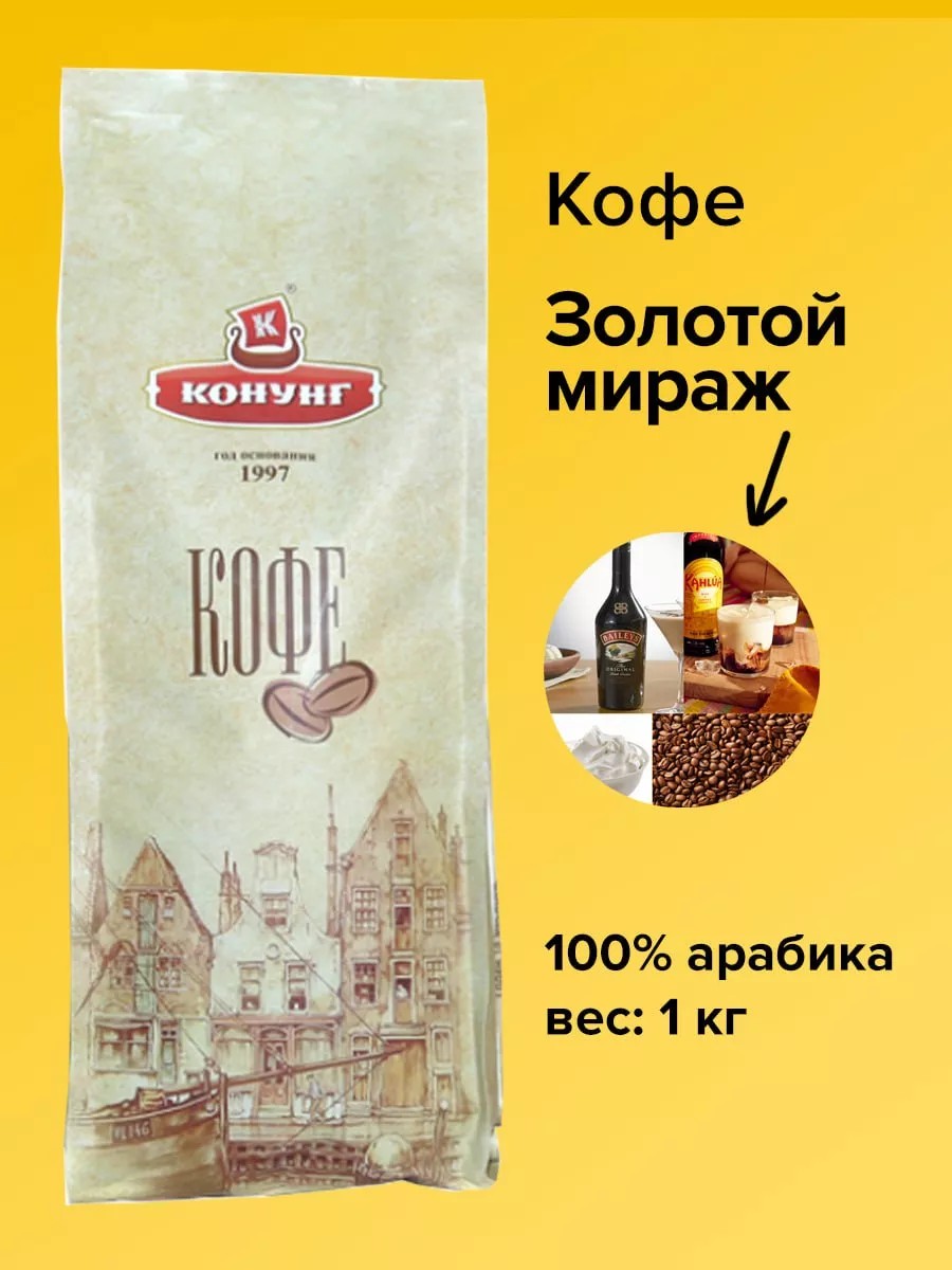Зерновой кофе Золотой мираж - Шикарное трио из нежных сливок, ликеров «Беллиз» и «Калуа» тонко и гармонично аккомпанирует оригинальному и неподражаемому вкусу превосходного кофе Арабика. Арабика, средняя степень обжарки.
