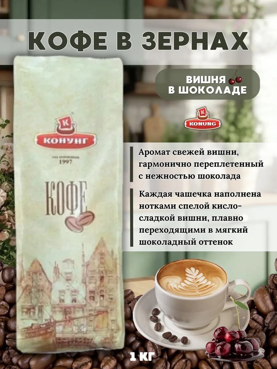 конунг Кофе в зернах Вишня в шоколаде, 1 кг