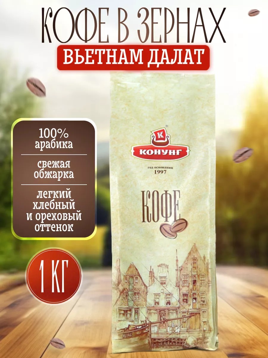 Конунг Кофе в зернах натуральный арабика 1кг Вьетнам Далат