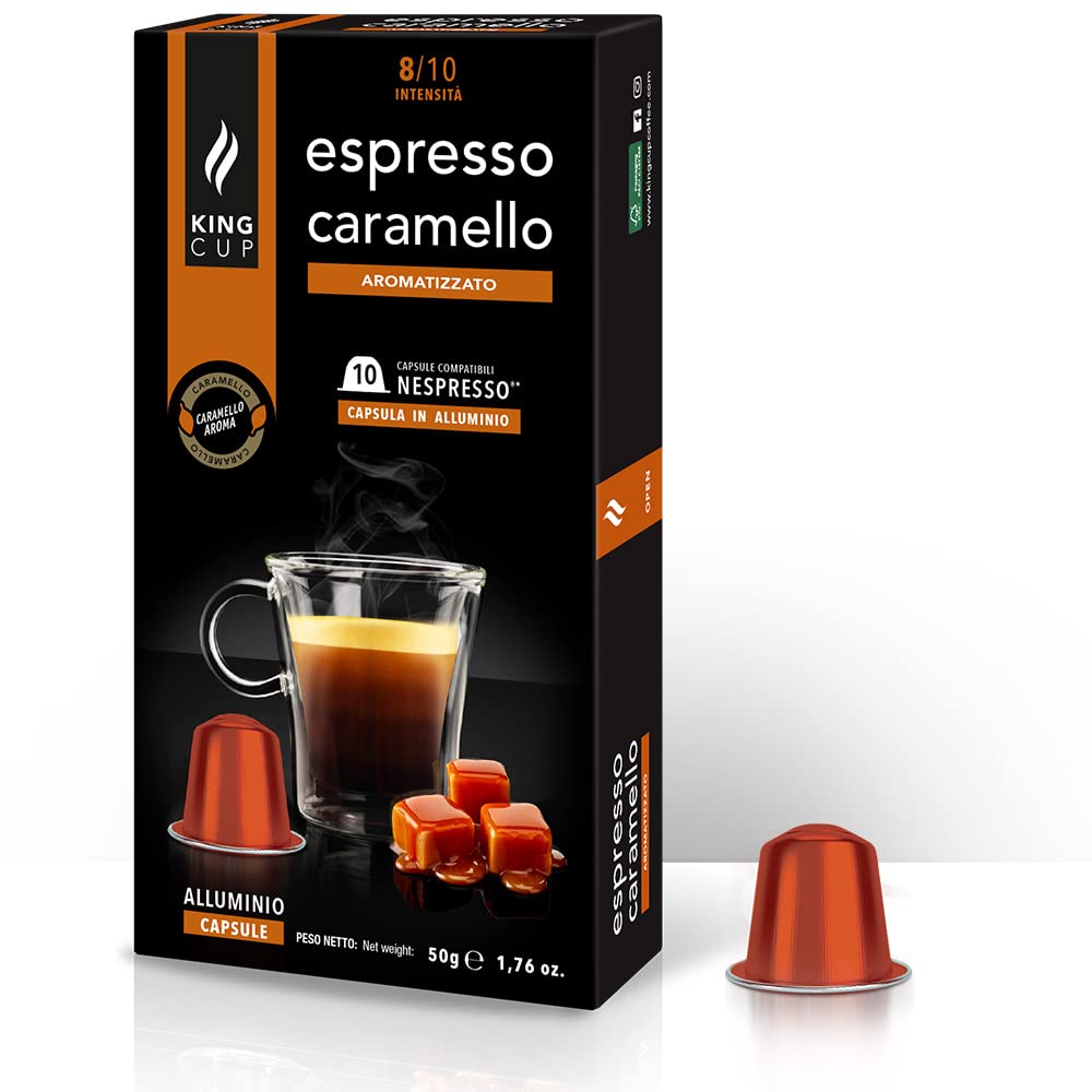 King Cup - 1 Pack of 10 Caramel Espresso Coffee Capsules, 10 Capsules 100 Compatible with the Nespresso System of Caramel Espresso Coffee Flavored Drink, Gluten and Lactose Free INGREDIENTS "98.8 , instant coffee, caramel flavoring"CUSTOMER SERVICE - We have large storage spaces, specialized and highly competent staff to ensure the full operation of the company's logistics. The end customer is always the center around which all the company's activities are articulated, designed with the sole purpose of guaranteeing total customer satisfaction. Our Customer Service is at your disposal 24 7 for any request, do not hesitate to contact us !!. ? KING CUP - King Cup in the import and distribution of coffee, instant drinks and compatible capsules that since its inception has put the consumer at the center of attention by seeking and guaranteeing excellence. We have gone as far as Asian and European producers where we cultivate and process the roots with the most modern methods according to the original recipes in order to maintain all the characteristics and preserve the properties. ✓ GENUINENESS - King Cup uses all the top-quality ingredients that enhance the benefits of the drink and keep its properties intact, offering healthy and wholesome drinks that enhance its taste and benefits. Most of our products are lactose-free (contains milk proteins), gluten-free, palm oil-free, GMO-free, trans-fat-free, and hydrogenated fat-free. CARAMEL - Don't worry, King Cup's caramel coffee isn't too sweet! We only use natural flavors and employ top-quality roasters. The result is the pleasure of an espresso coffee made from a delicate but decisive roasting of the beans at a controlled temperature, combined with the sweetness of caramel. CONTENTS - At home, you will receive 1 box of 10 capsules compatible with the Nespresso system machine of sugar-free lemon and ginger flavored drink. Perfect for those who don't like overly sweet drinks, or for those who prefer to sweeten them with alternative products. You can enjoy them both hot and cold. Simply insert the capsule into the machine and wait a few seconds for the product to dispense. King Cup - 1 Paquet de 10 Capsules de Café Expresso aux Caramel, 10 Capsules 100 Compatible avec le Système Nespresso de Boisson Aromatisée Café Expresso Caramel, Sans Gluten et Sans Lactose INGRÉDIENTS "98,8 , café soluble, arôme caramel "SERVICE À LA CLIENTÈLE - Nous disposons de grands espaces de stockage, d'un personnel spécialisé et hautement compétent pour assurer le plein fonctionnement de la logistique de l'entreprise. Le client final est toujours le centre autour duquel s'articulent toutes les activités de l'entreprise, conçues dans le seul but de garantir la satisfaction totale du client. Notre Service Client est à votre écoute 24h 24 et 7j 7 pour toute demande, n'hésitez pas à nous contacter !!. ? KING CUP - King Cup dans l'importation et la distribution de café, boissons solubles et capsules compatibles qui depuis sa création a mis le consommateur au centre de l'attention en recherchant et en garantissant l'excellence. Nous sommes allés jusqu'aux producteurs asiatiques et européens où nous cultivons et traitons les racines avec les méthodes les plus modernes selon les recettes originales afin de garder toutes les caractéristiques et de préserver les propriétés. ✓ GENUINITE' - King Cup utilise tous les ingrédients de premier choix qui améliorent les avantages de la boisson et gardent ses propriétés intactes, offrant des boissons saines et saines qui améliorent son goût et ses avantages. La plupart de nos produits sont sans lactose (contient des protéines de lait), sans gluten, sans huile de palme, sans OGM, sans gras trans et sans gras hydrogénés. CARAMEL - Ne vous inquiétez pas, le café au caramel de King Cup n'est pas trop sucré! Nous n'utilisons que des arômes naturels et utilisons des torréfacteurs de qualité supérieure. Le résultat est le plaisir d'un café expresso issu d'une torréfaction délicate mais décisive des grains à température contrôlée, alliée à la douceur du caramel. CONTENU - A la maison, vous recevrez 1 boîte de 10 capsules compatibles avec système machine Nespresso de boisson au goût de citron et de gingembre sans sucre. Parfaites pour ceux qui n'aiment pas les boissons trop sucrées, ou pour ceux qui préfèrent les adoucir avec des produits alternatifs. Vous pouvez profiter à la fois chaud et froid. Il vous suffit d'insérer la capsule dans la machine et attendre quelques secondes pour la distribution du produit.
