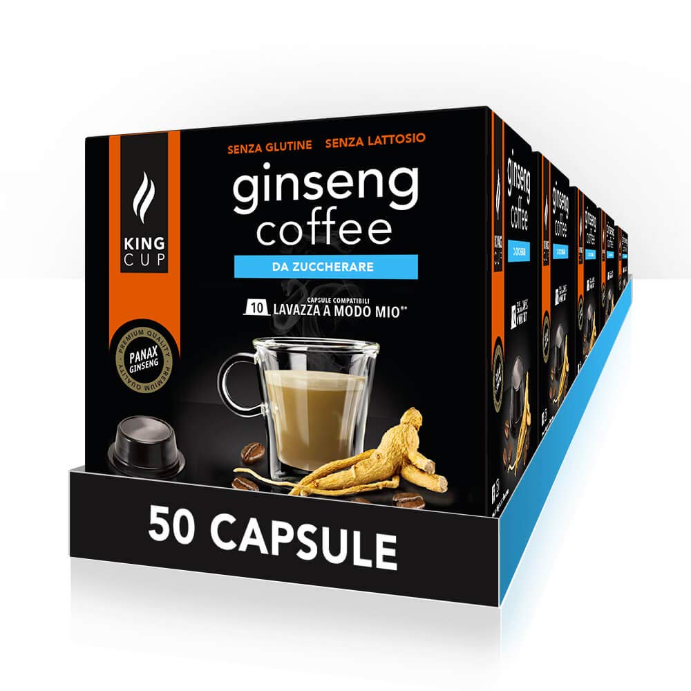 King Cup - 5 Packs of 10 Sugar-Free Ginseng Capsules 50 Capsules 100% Compatible with the Lavazza as Modo Mio Ginseng Flavored Drink System Gluten-Free and Lactose-Free