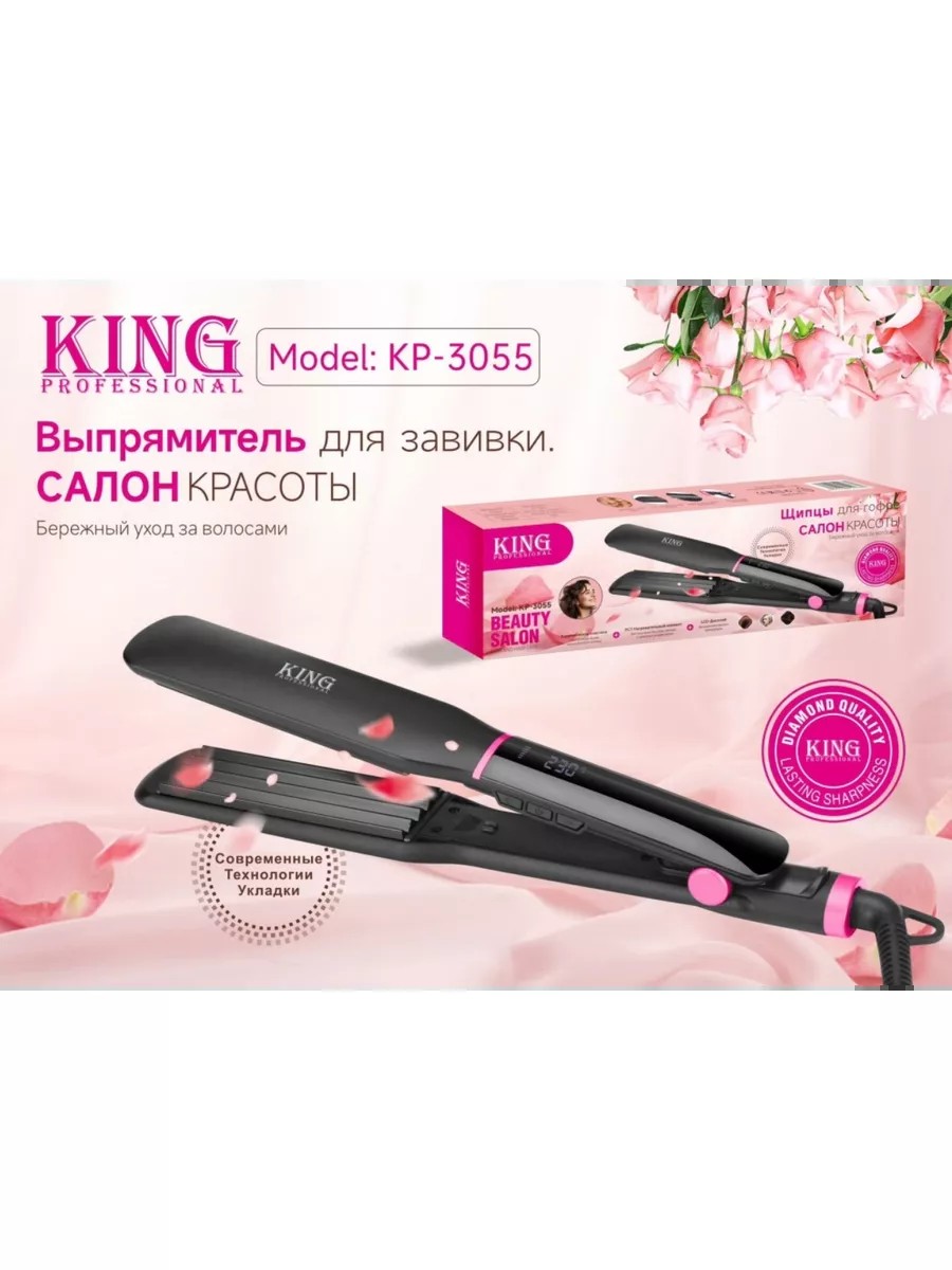 Гофре KING KP-3055 для волос помогут Вам быстро уложить волосы и создать стильную вечернюю прическу для выхода в свет. Керамическое покрытие рабочей поверхности не сжигает и не портит волосы. Стильный дизайн и удобная эргономичная форма.
