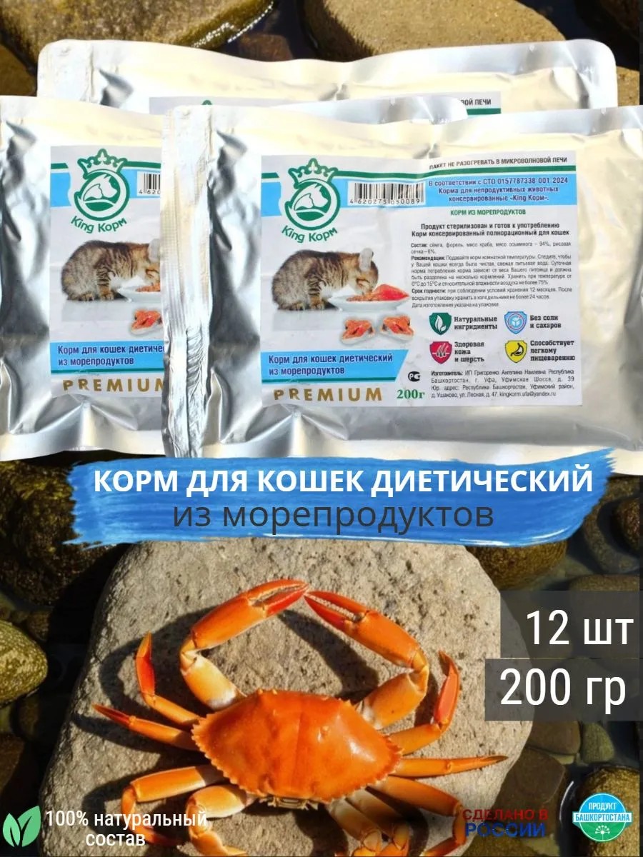 KING KORM Корм для кошек диетический с морепродуктами 12шт по 200гр