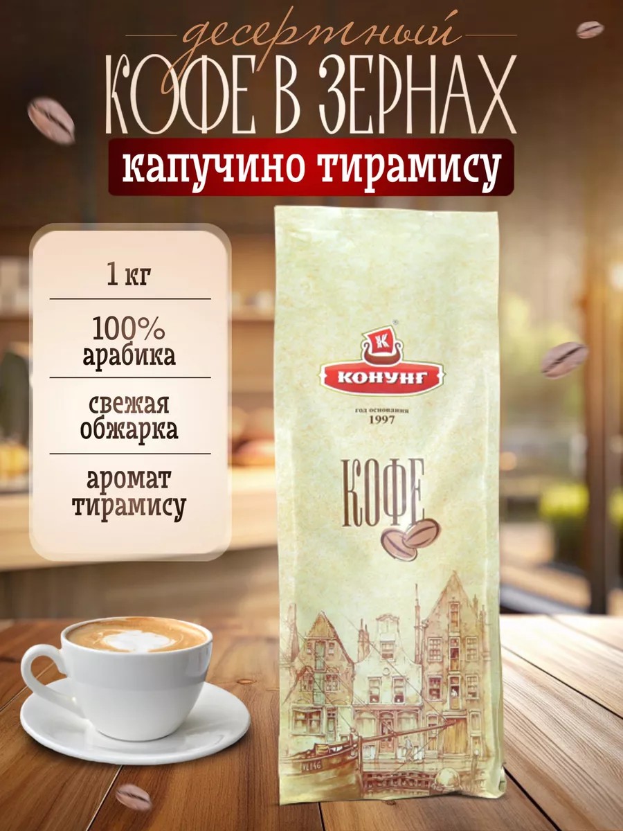 Конунг Кофе натуральный в зернах с ароматом 1кг Капучино-Тирамису