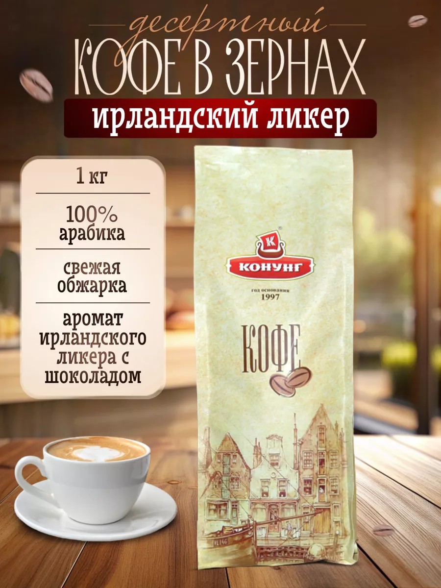 конунг Кофе натуральный в зернах с ароматом 1кг Ирландский ликер